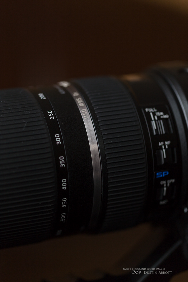 One thing this lens is not is “quick” in the aperture sense.It starts at a middling f/5 and ends up at an unusual f/6.3.This isn’t unusual for Tamron or Sigma, per se, as they offer several lenses with a maximum aperture of f/6.3.Canon and Nikon native lenses top out at f/5.6.That throws some people off, because they may have heard that their camera will only autofocus up to f/5.6, but this lens will actually autofocus on any DSLR; that is not a concern.