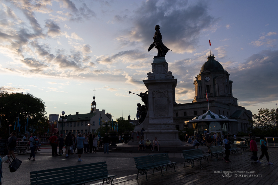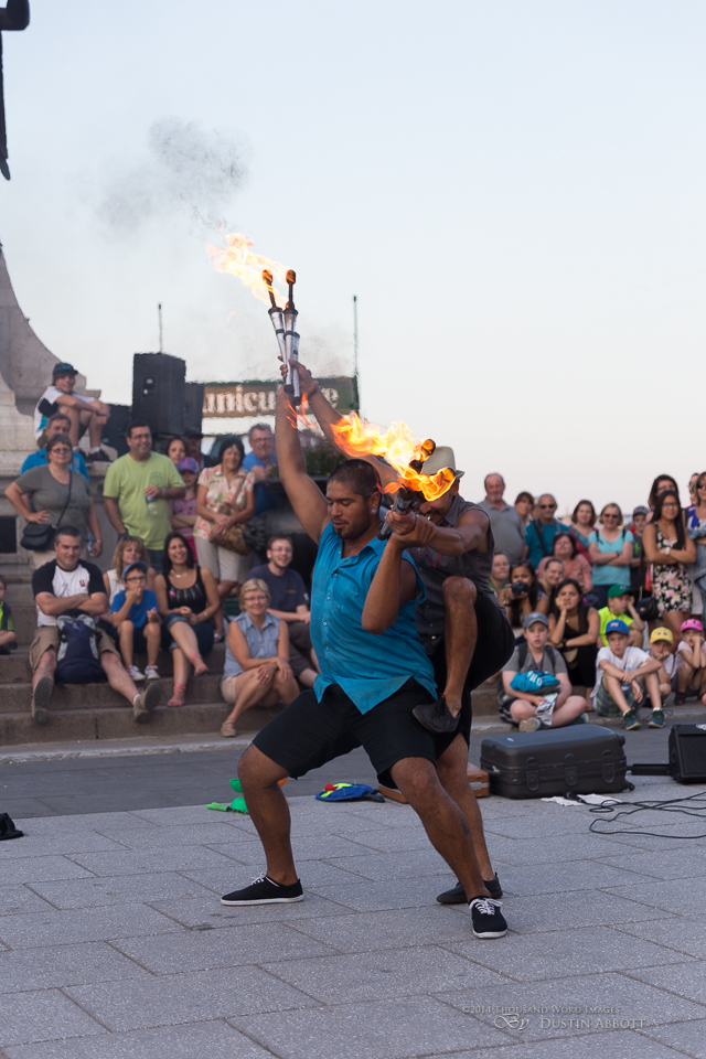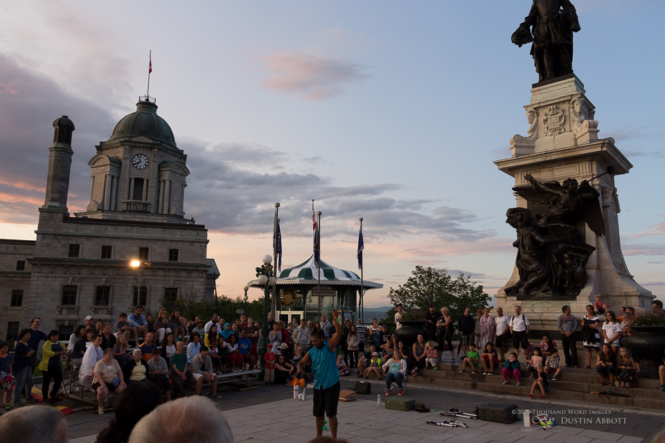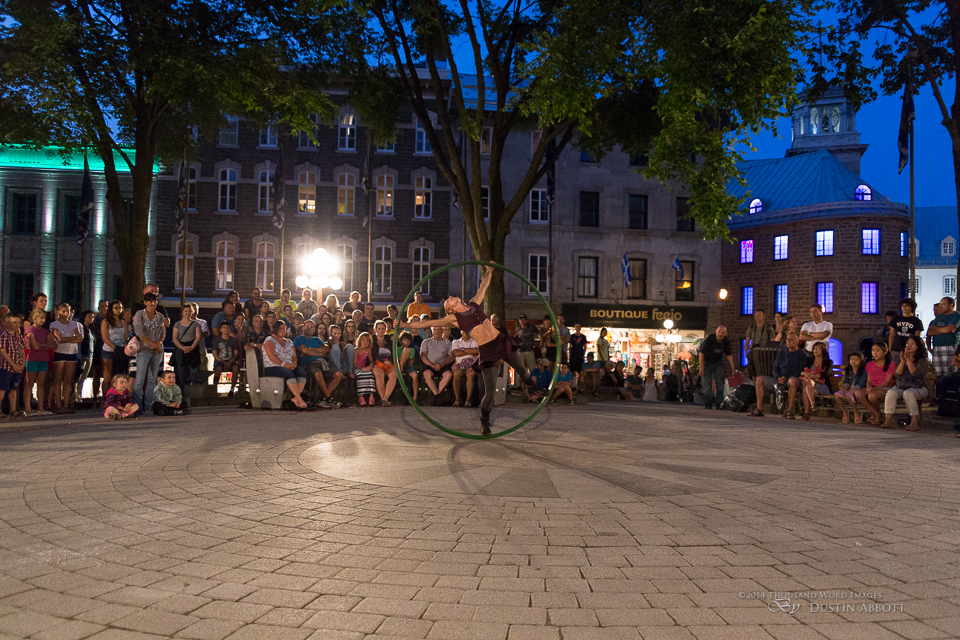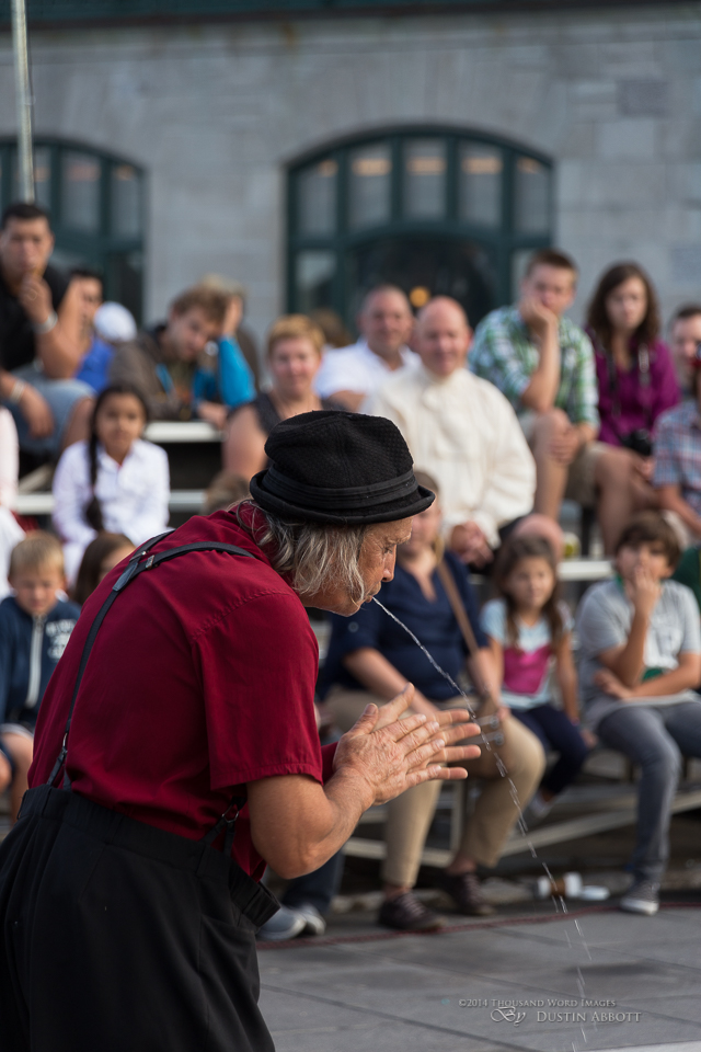 One of the reasons we enjoy visiting Quebec City around the time of our anniversary is that it coincides with two exciting events: the Nouvelle France festival in which many natives dress in French Colonial costumes and celebrate the cultural heritage of the city (the old city has many buildings and shops dating back hundreds of years). People in costume provide great photography subjects, and I had a great time capturing the ambiance. The second event that weekend is an International fireworks competition, held this year over the St. Lawrence with the fireworks launched from a massive barge. It is all choreographed to music and is, put simply, amazing.