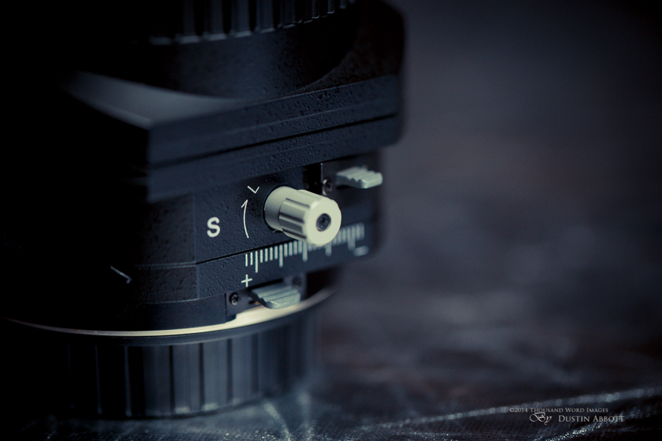 One other note on this movement: there is a somewhat delicate balance between the movement knobs and the locking knobs. If the locking knobs are loosened too much there is no friction left, meaning that that the lens will just drop to the lowest position of the shift axis. It can be a bit annoying. You need to learn to maintain a balance between friction and freedom of movement. It isn’t really all that complicated, but tilt-shift lenses have a very different learning curve than other lenses.
