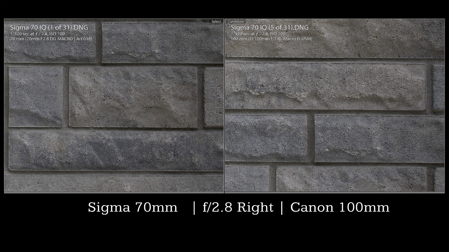 I used a strong competitor in this field as a benchmark for this comparison – the Canon EF 100mm f/2.8L IS USM. I’ve owned this lens since shortly after its release and have used it for literally thousands of product shots for dozens of companies. I’ve also used it as a point of comparison for variety of other macro lenses released since I’ve owned it. While the focal length isn’t identical (Sigma alone makes a 70mm Macro), I’ve made minor adjustments to the camera position to accommodate the difference in framing.