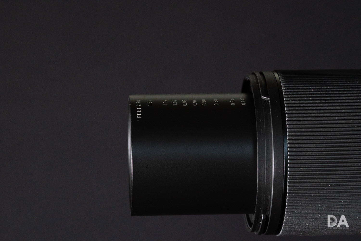 First of all, this lens is not internally focusing, which means that the inner barrel extends like a piston when focusing towards the macro range. In fact, you can actually get reproduction ratios by seeing the markings on that inner barrel as it extends: