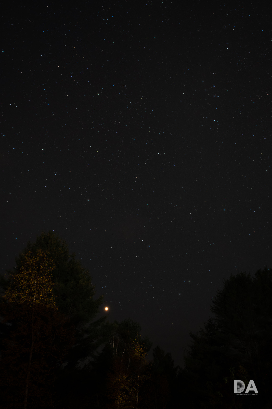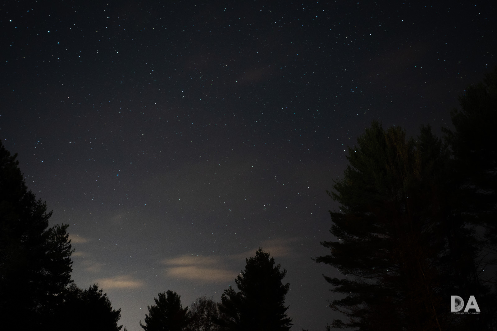 P.S. I was able (at a later date) to get a quick few shots of the night sky. It was far from optimal conditions, but it was enough to reinforce the findings from my test above. There is a bit of “stretching” of the stars here due to the length of the exposure, but not much evidence of coma itself.