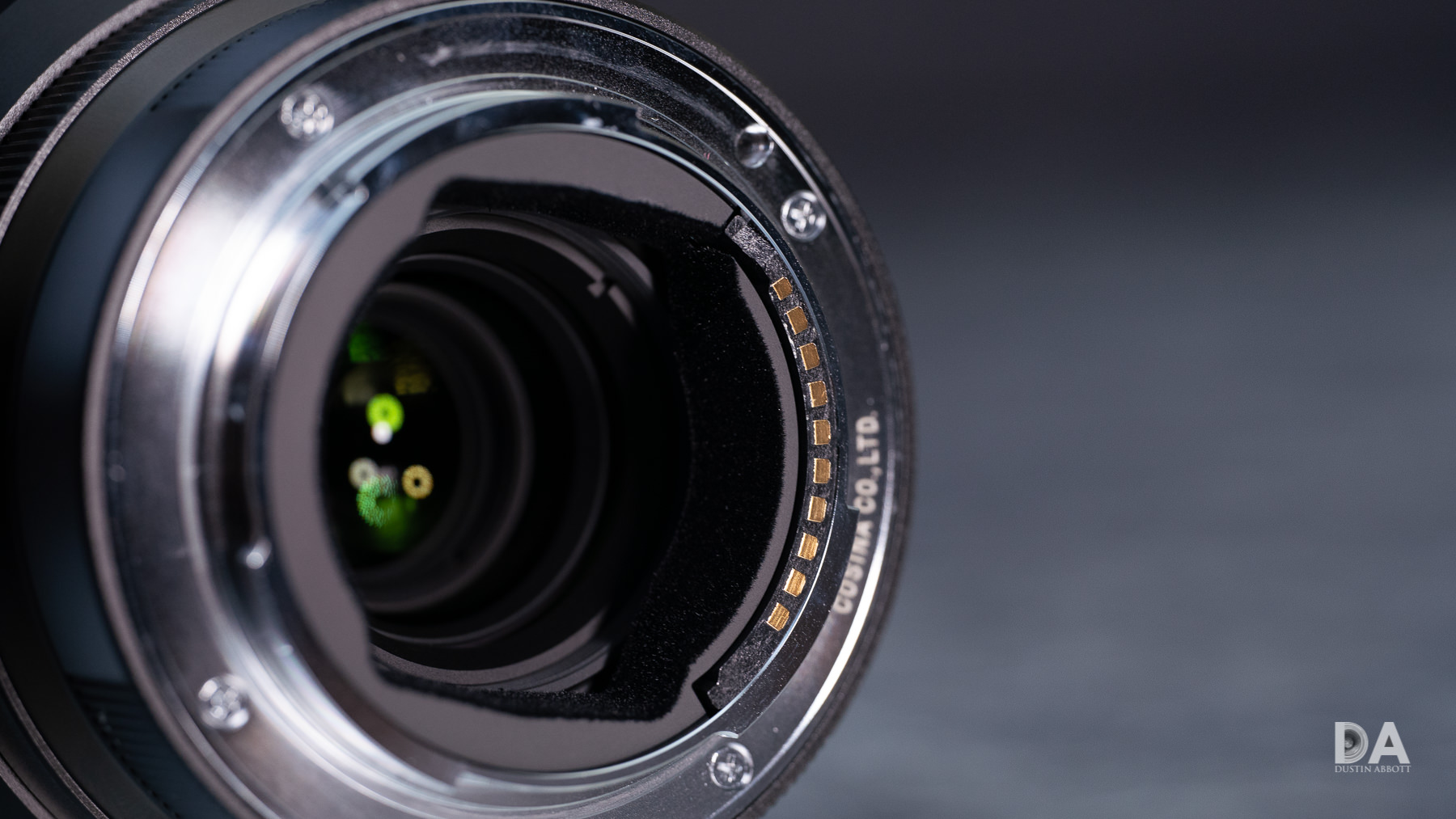 A look at the rear of the lens shows two things: 1) there is electronic contacts present and 2) there is no weather sealing gasket.