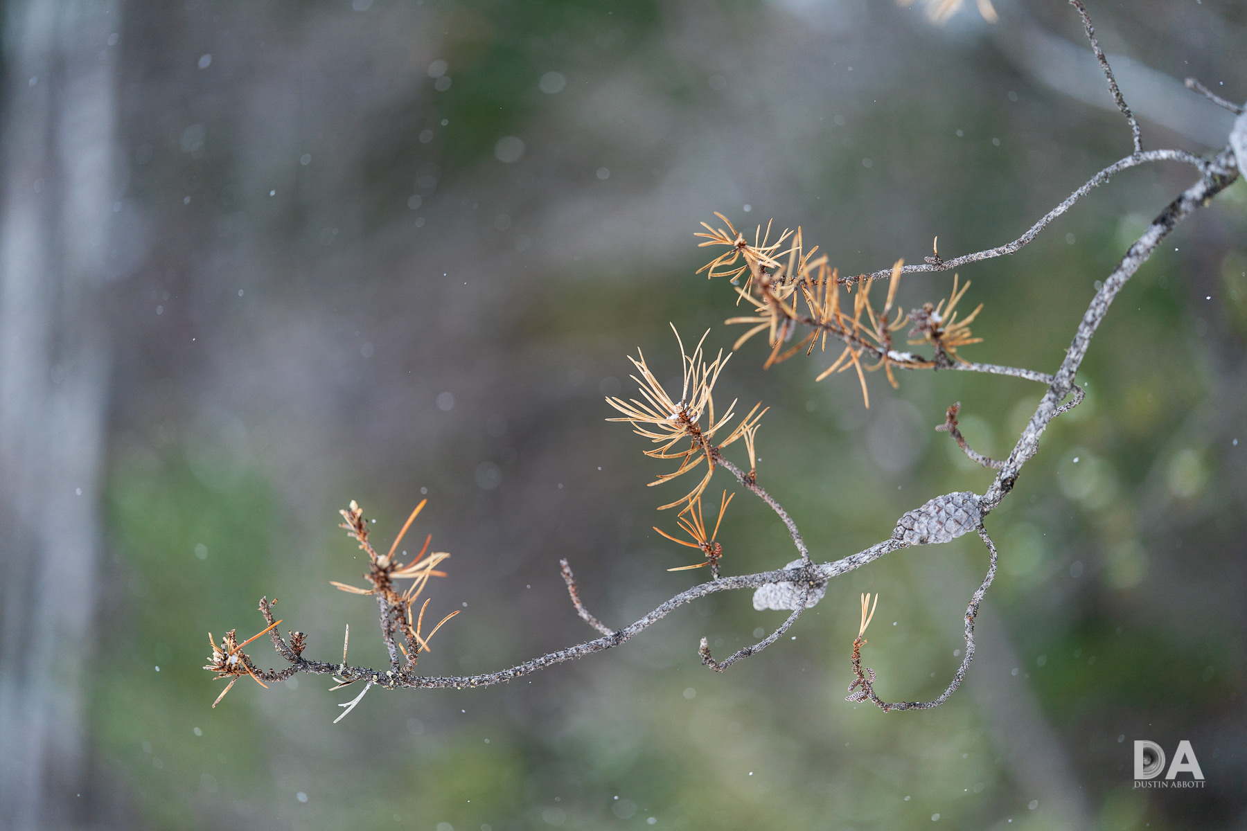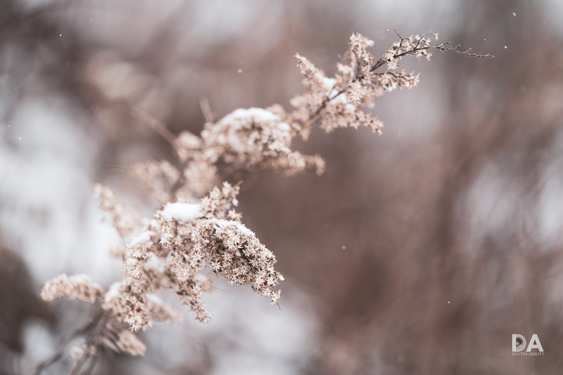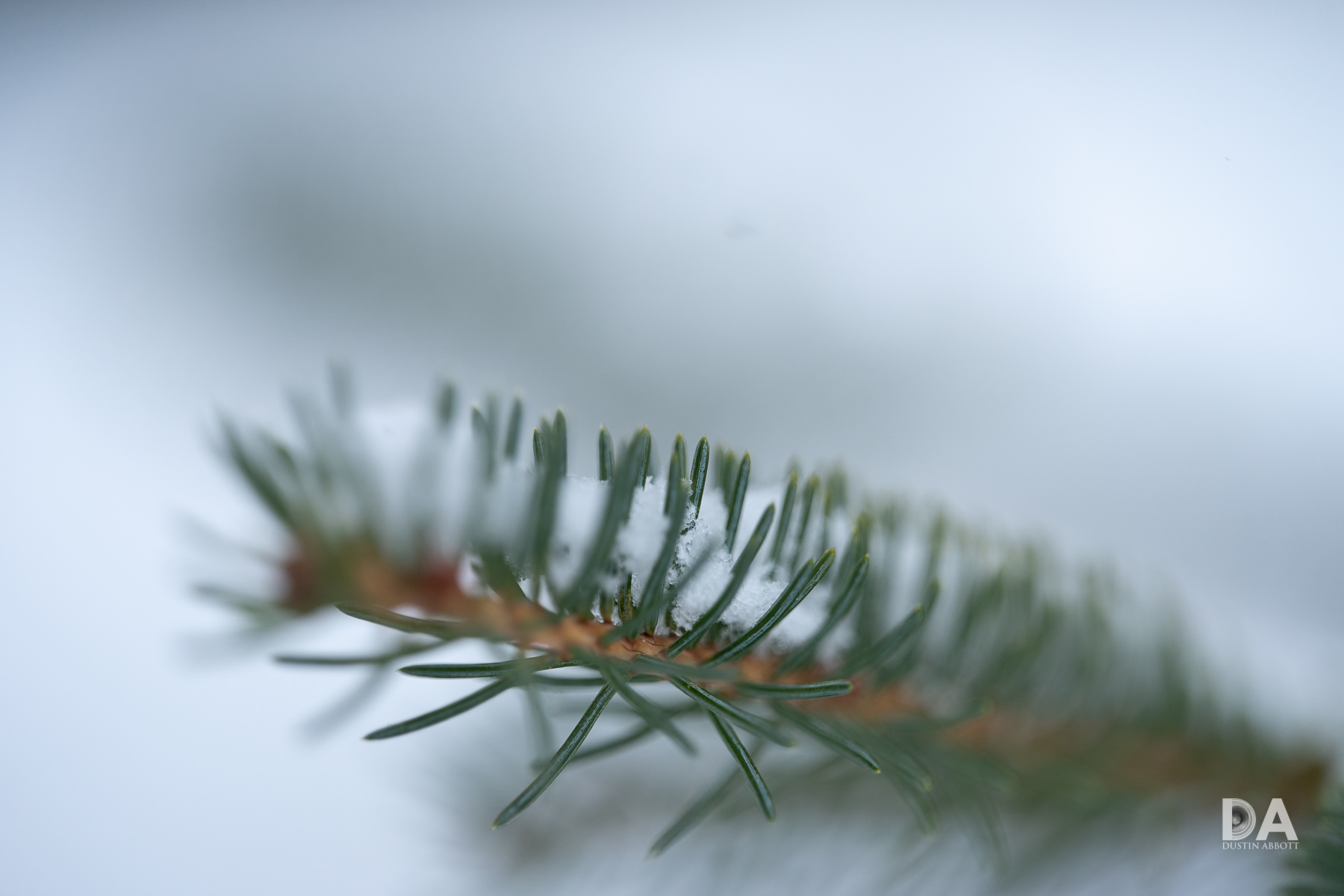 Here’s another example where the crop is taken from the lower third of the frame. It is this type of shot that most impresses me, as I am very familiar with these kinds of conditions. Small “blossoms” like this are very hard to resolve because there are a lot of areas of fine detail with a lot of contrast points. This is exacerbated by the snow, which tends towards “hot spots” (bright areas) and transitions where chromatic aberrations often come out. I shot this same shot with the 40mm F1.2 (at F1.4), and it really struggled. The APO 110M passed this test with flying colors.