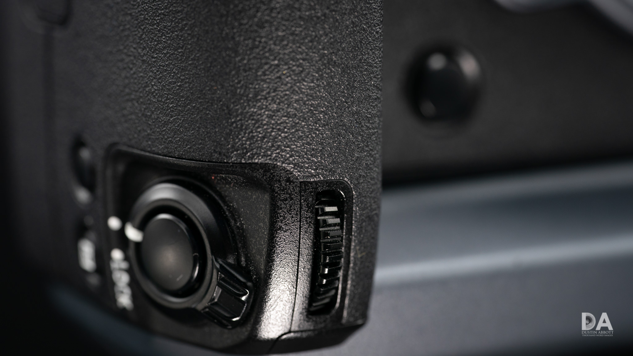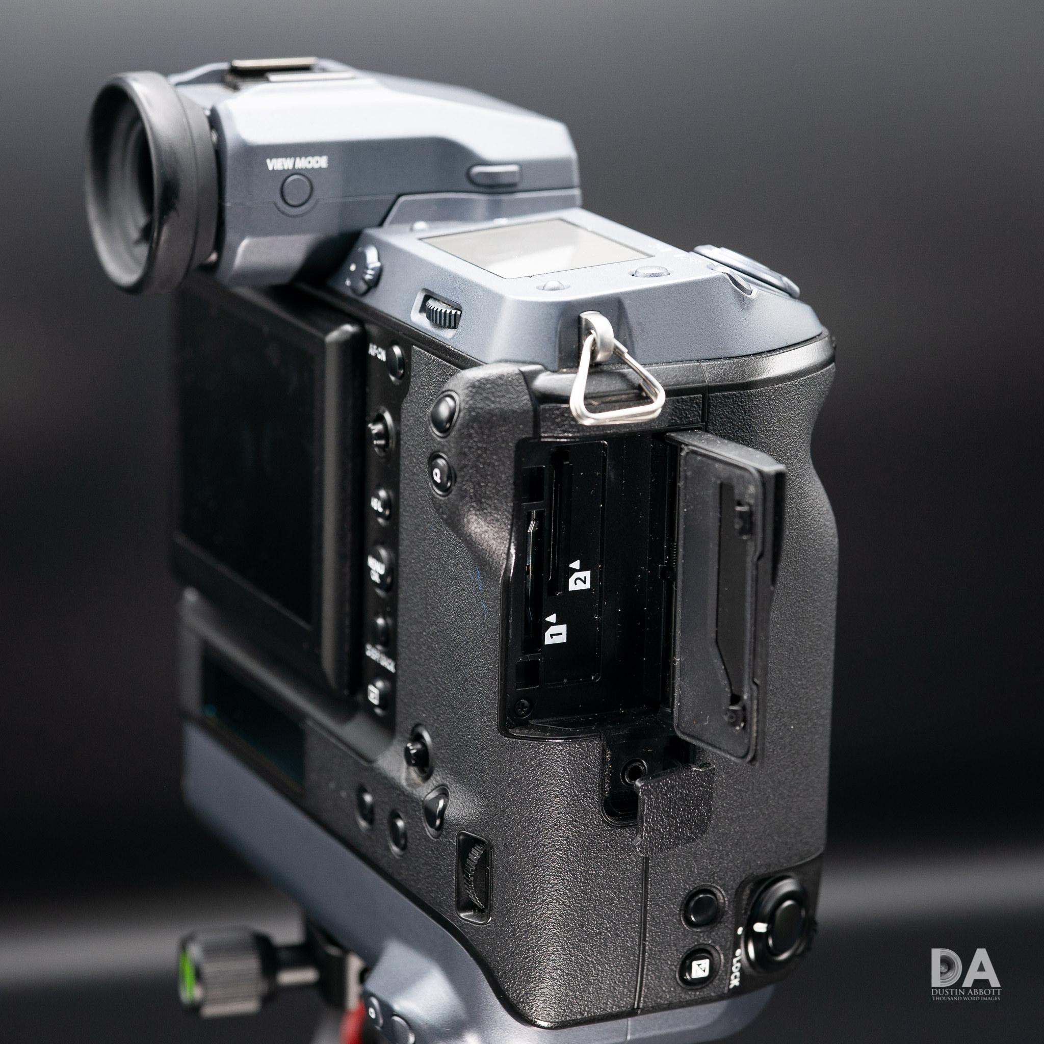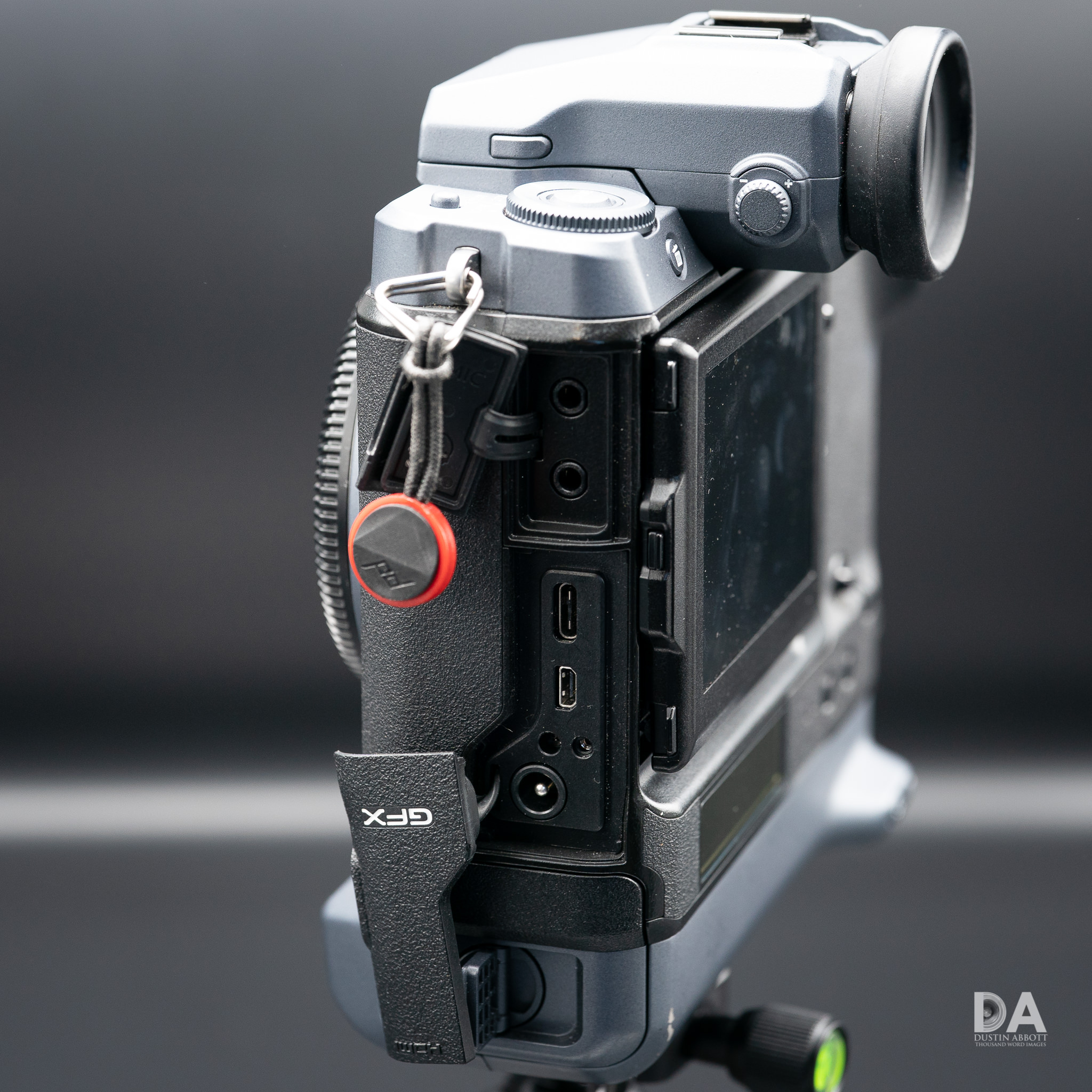 The left side of the camera sports a flash sync port (it has a little cover that invariably will get lost, as it was on my loaner camera!). Maximum flash sync speed is a rather pathetic 1/125th of a second, so plan to do a lot of HSS (high speed sync) with all that entails. There are two covered banks of ports, with the top section housing a microphone input along with a headphone monitoring jack. The lower port has a USB-C port, micro-HDMI, and a 15V DC-in that I presume one would use while tethering.