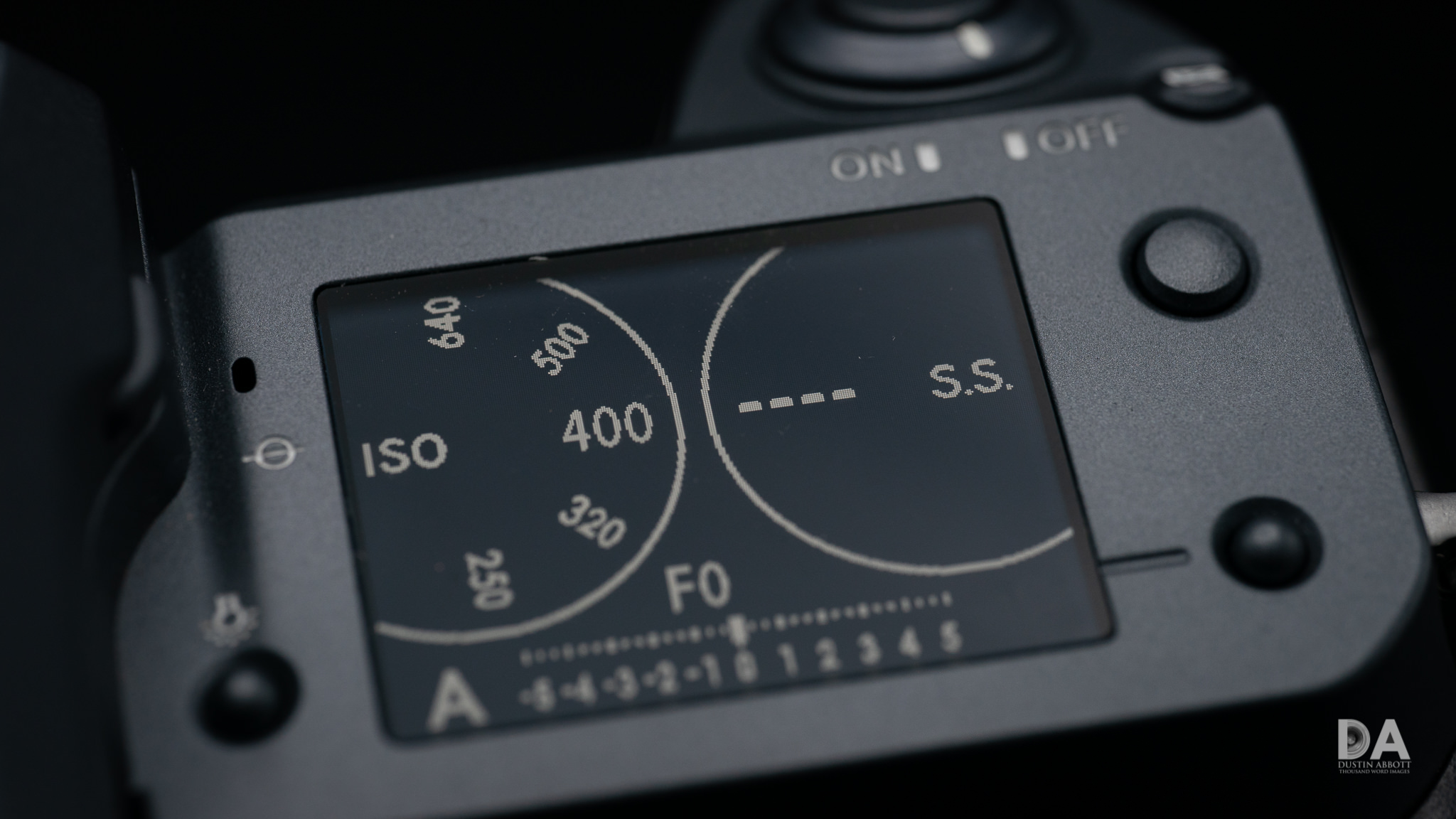 The other changes, however, are negative ones from my perspective. You have three options for the top display that you can cycle through by pushing the small button on the lower right. One imitates two dials, which shift depending on what mode you are in, a second simply shows histogram, and the third reorganizes the information and shows you a bit more on screen. There is a larger button in the middle right which will cycle through a few different modes (manual and AV), while a smaller button that is tilted forward a bit at the front allows you to access exposure compensation (you have to hold the EC button while rotating the rear dial to make changes). Changes are made via the front or rear dials. You do get used to it after a while, but I never quite developed a feeling that these controls were as naturally intuitive as Fuji’s typical configuration. On a positive note, I do like the fact that the current settings remain passively visible even when the camera is powered off. A button to the left of the screen will light up the top LCD if you are working in a dimly lit environment.