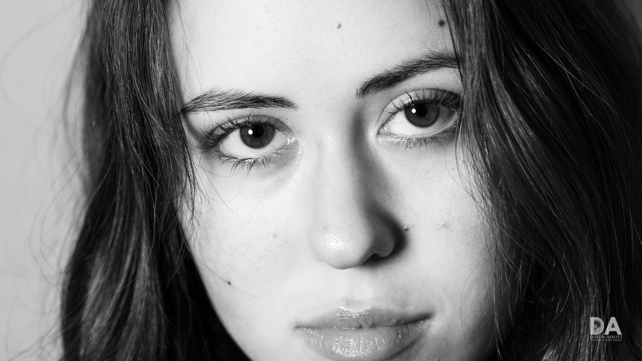 As before, though, I think the advantage for the medium format camera is in the tonality. Looking closely (175%) at the lips and hair reveal that there is more life in the lips, with more different degrees of luminosity. The hair allows shows more variation of contrast.