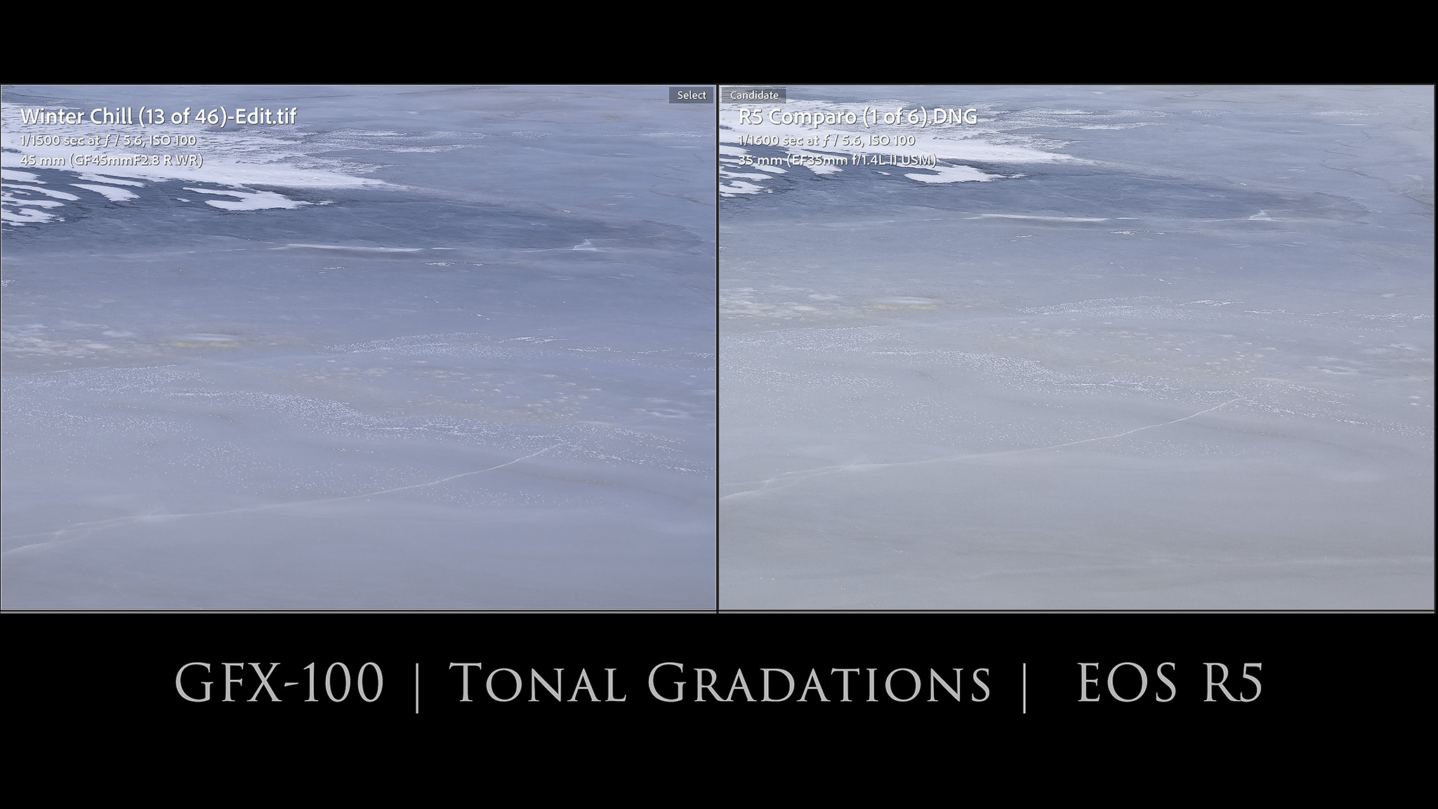 The superior lens on the Canon allows for the detail and contrast to be fairly similar, but where I noticed the biggest difference was in the subtlety of the gradations of tonality in the ice. There is just more diversity of the light captured there…which is due to the excellent sensor.