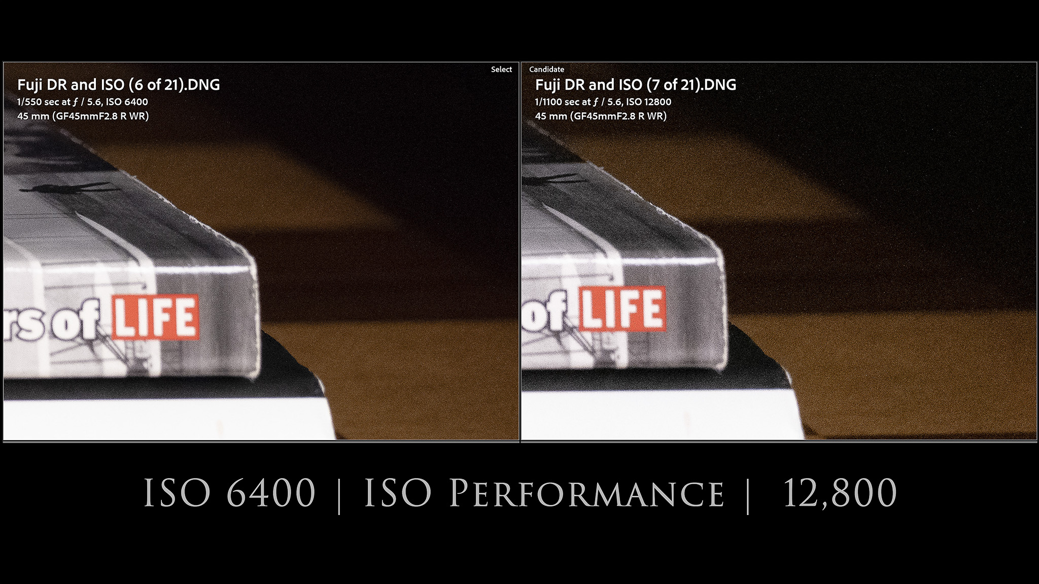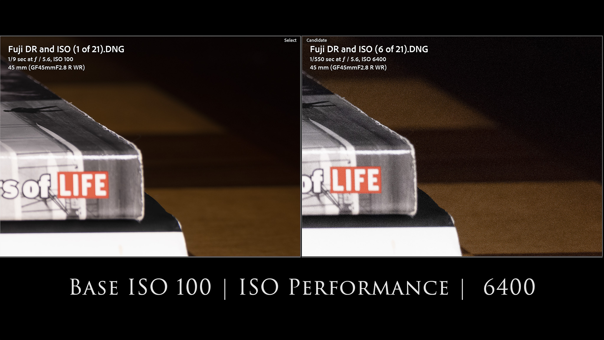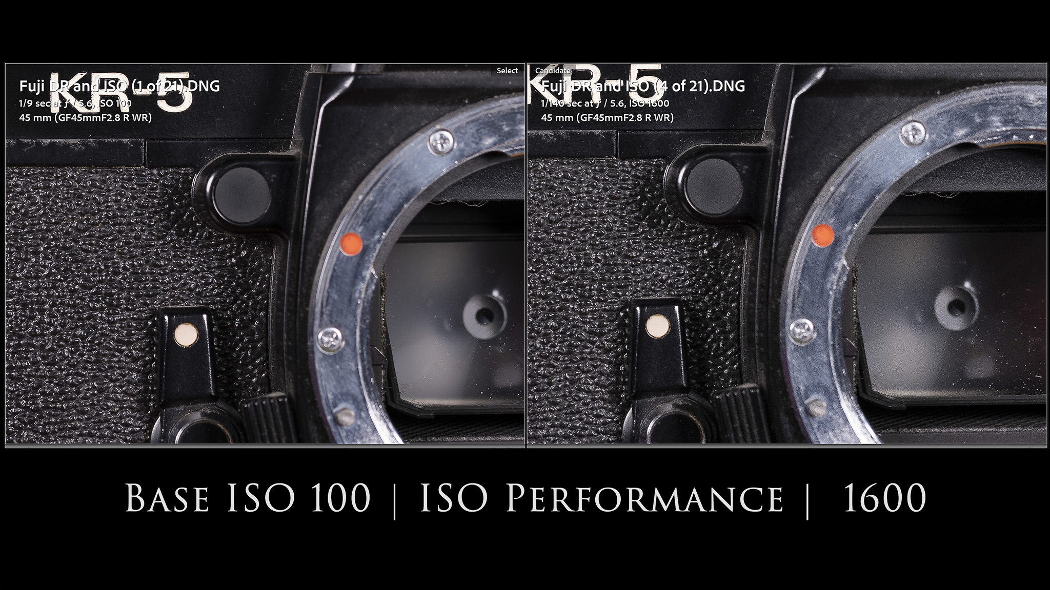 A larger sensor area means that pixels themselves are larger, which, in theory, allows for less noise, better dynamic range, and smoother transitions. I’ve always favored full frame sensors over APS-C for that reason, and Fuji’s “medium-format-lite” sensor takes that further still, though the difference between full frame and the 0.79x crop of Fuji’s medium format isn’t as pronounced as the difference in sensor size between full frame and APS-C. But consider this: Fuji’s medium format sensor size is roughly 4x larger than the surface area of their APS-C sensor, so there is a huge difference between those two extremes. Let’s see if the larger pixels add up to improved ISO performance and dynamic range.