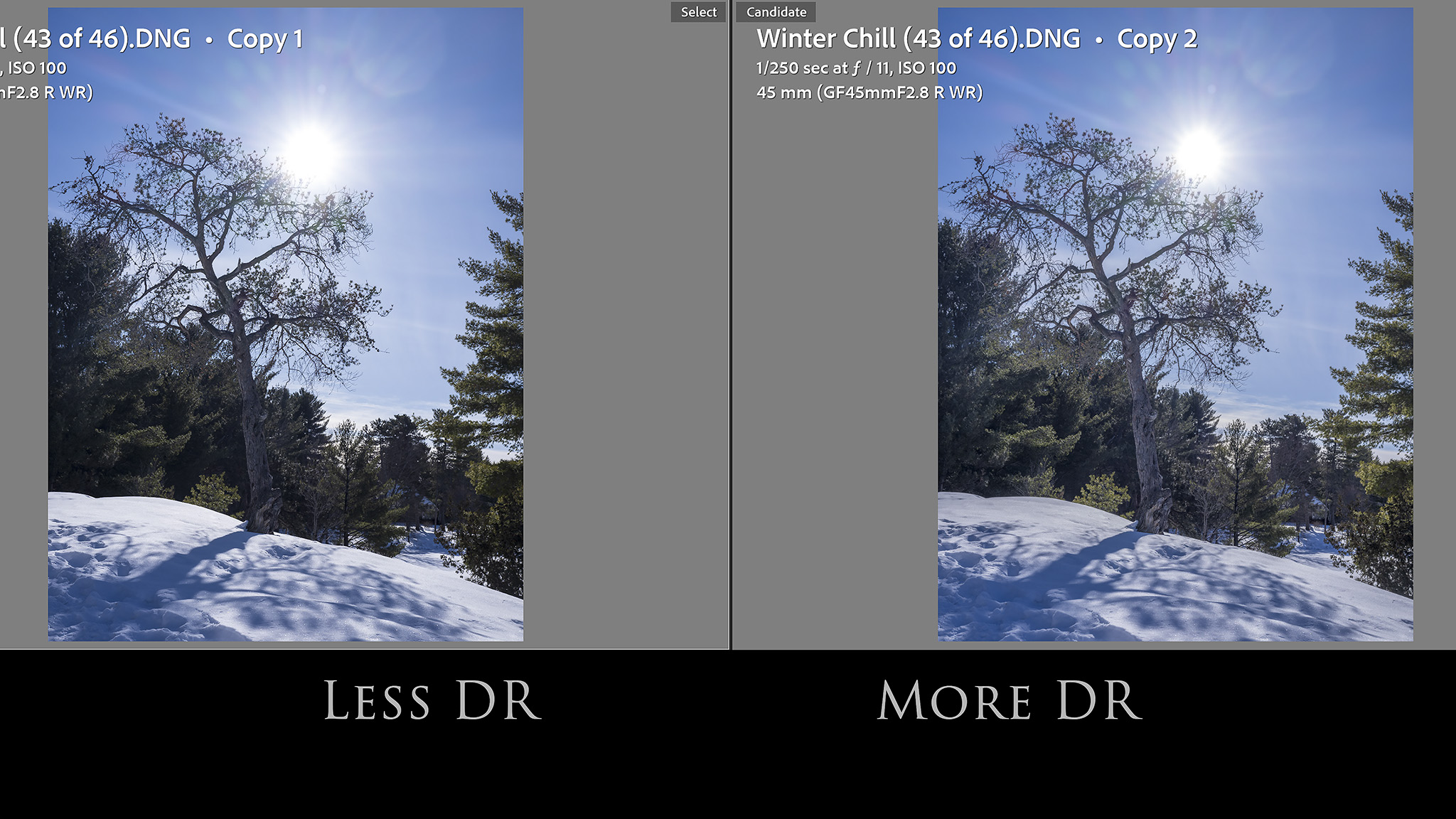 More dynamic range doesn’t always equal better images. Sometimes leaving a little mystery in the shadows adds a lot to an image, and often a blown out light coming through a window is preferable to seeing what’s outside. I liked the image on the left better even though you can see more details in the image on the right.