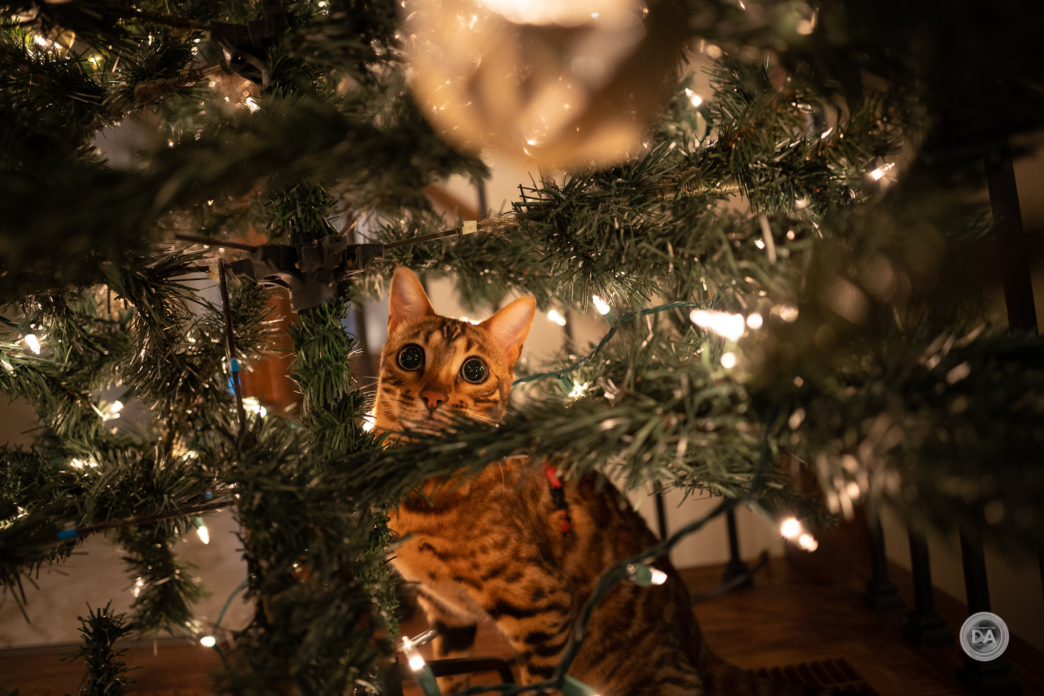 I got good Animal Eye AF results up close, though, even when shooting through the Christmas tree to Loki doing his best “puss in boots” impression.