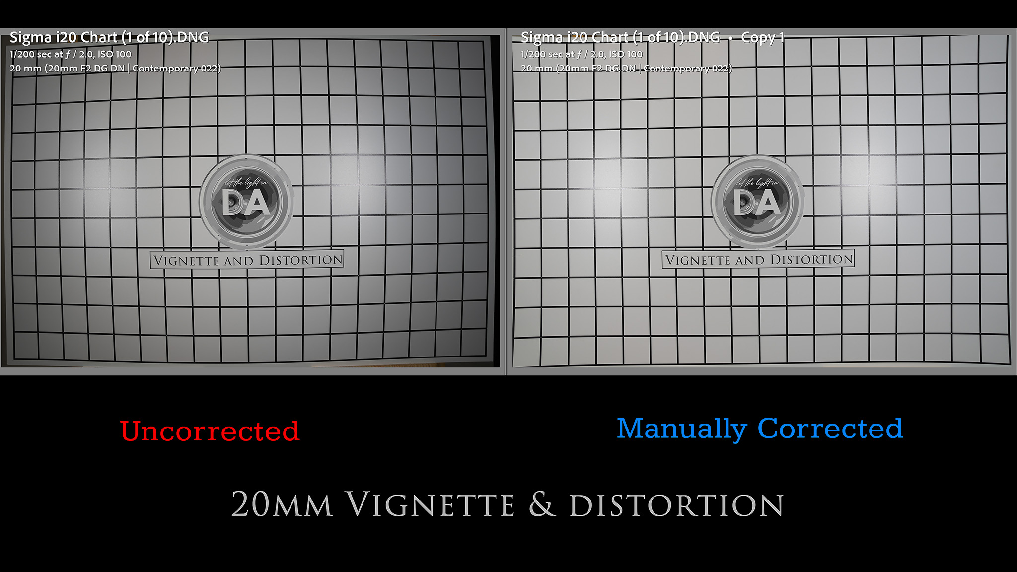 We’ll explore the details together, starting by a look at distortion and vignette. All chart tests done with a Sony Alpha 1 (50 MP) using a tripod and a two second timer.