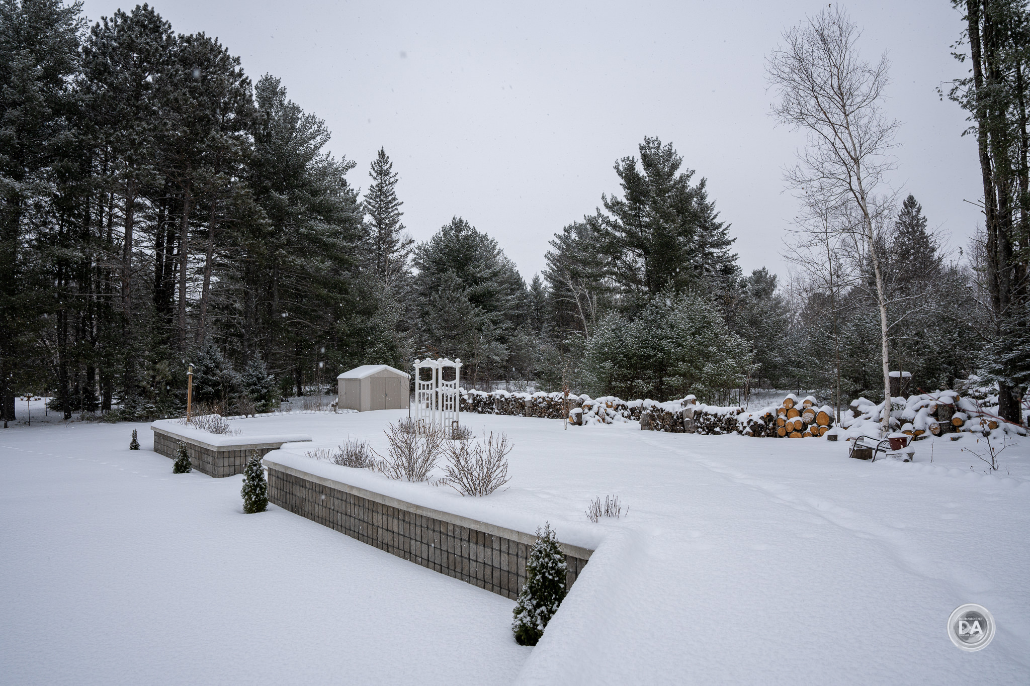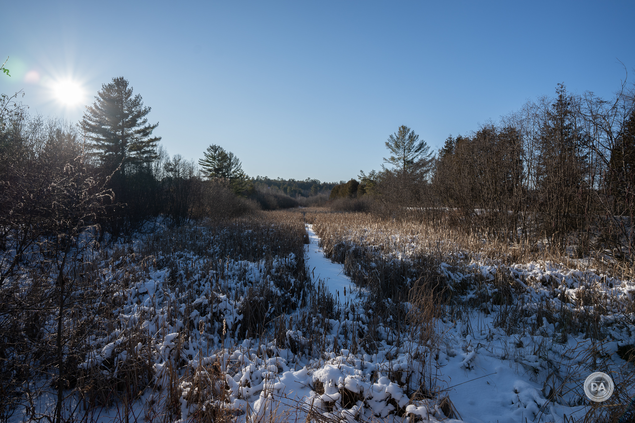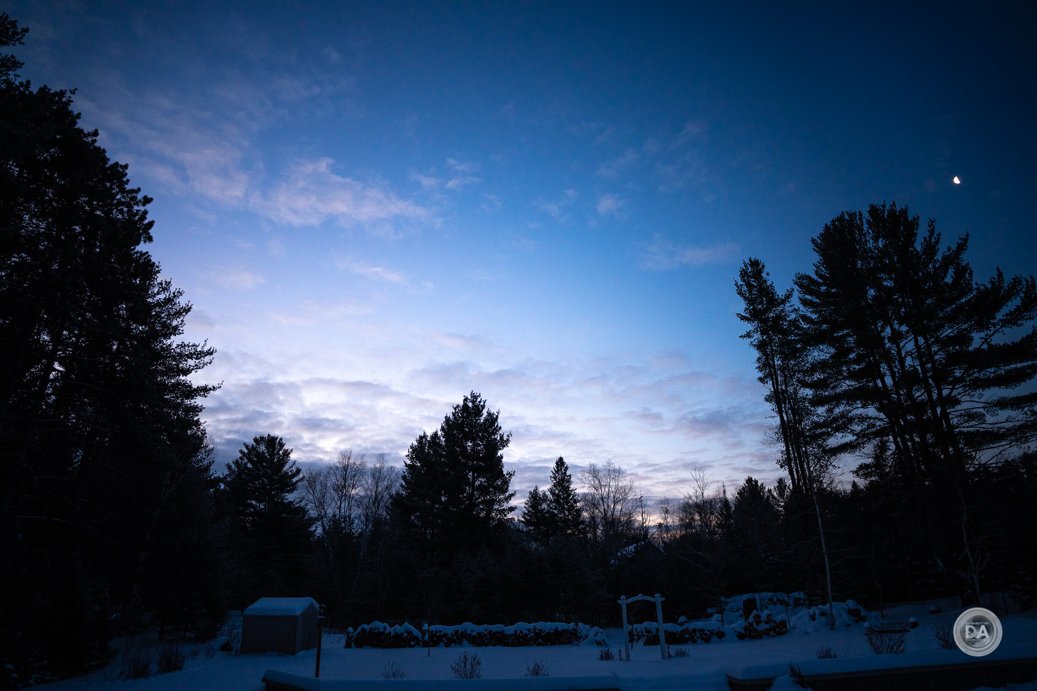 Vignette is also extremely heavy at F2 (again, even in the corrected JPEG). I had to dial in a +88 and slide the midpoint over to zero. I particularly noted that the vignette penetrated so deeply and heavily into the image frame that it seemed to impact exposure. I also found that while vignette improves as you stop down the lens, it never quite disappears. I did my review during winter, obviously, and snowy scenes really punish vignette. You can still seem some darkness in the corners of this image at F5.6: