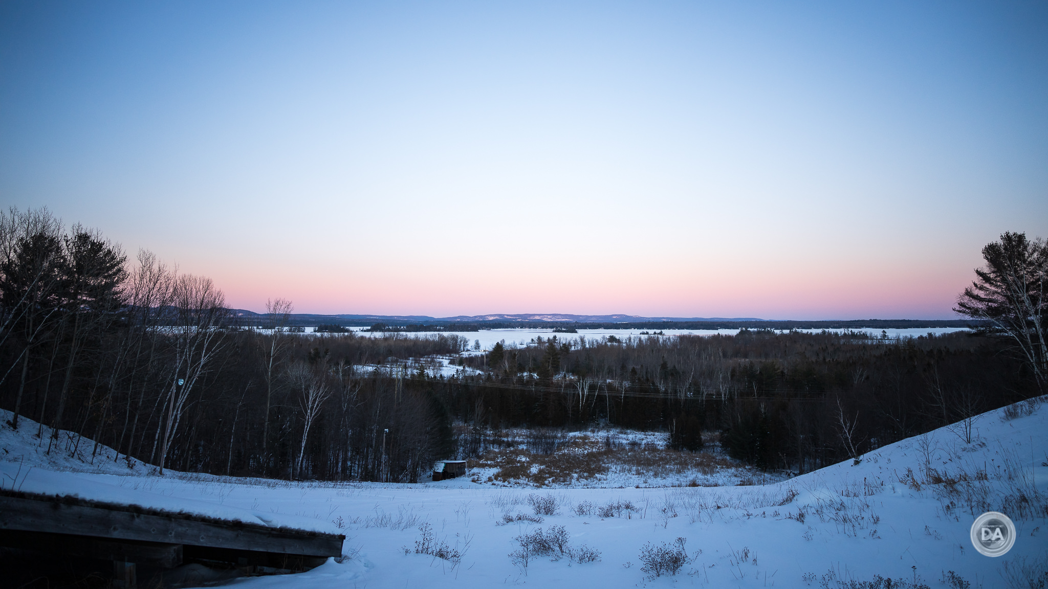 I love this F2 shot in general, as the winter alpenglow colors were gorgeous, but the vignette pretty much dominates the image.