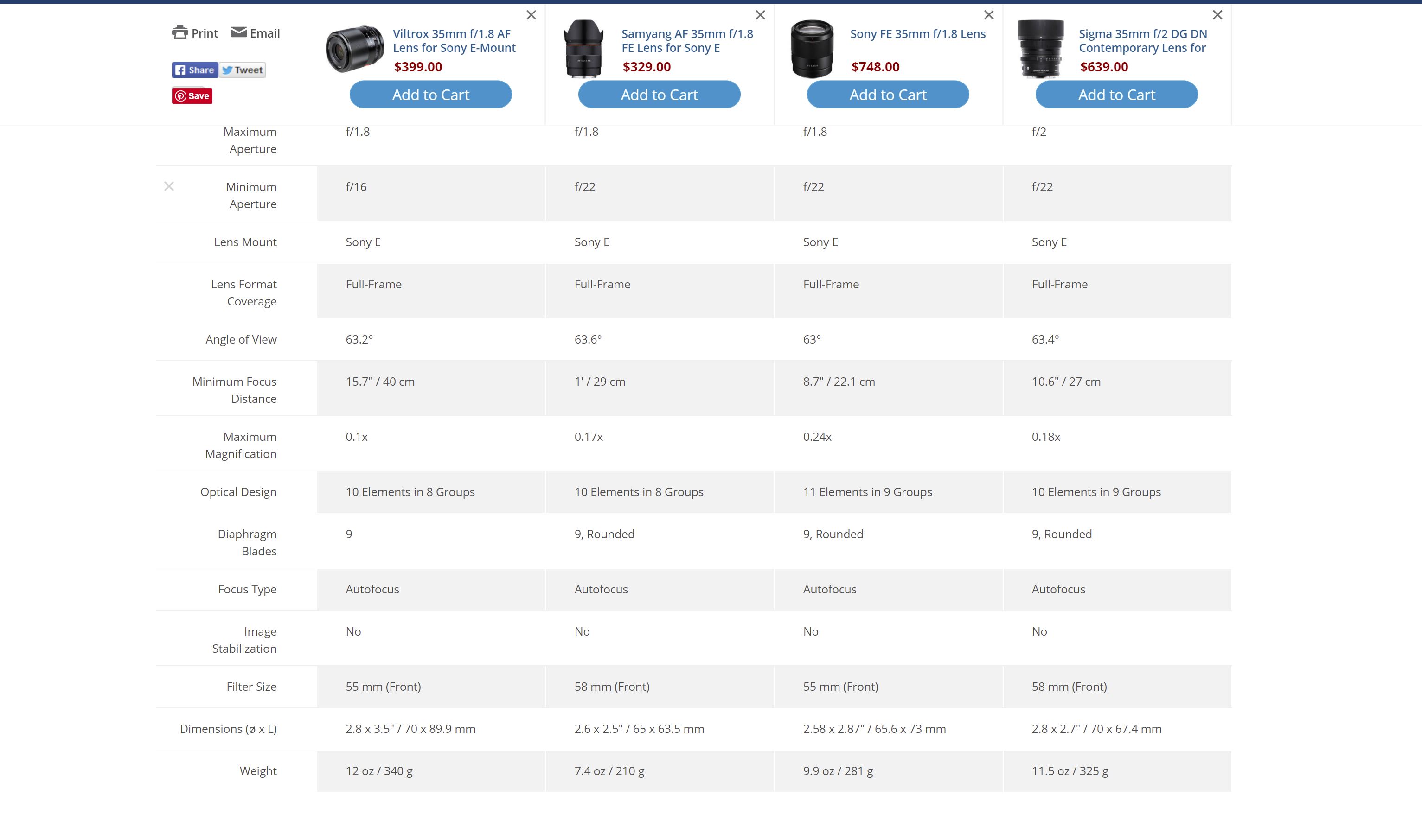 Here’s a look at the overall specifications relative to the two competitors (neither of which have an aperture ring, a decent manual focus ring, and no real metals in the construction materials).