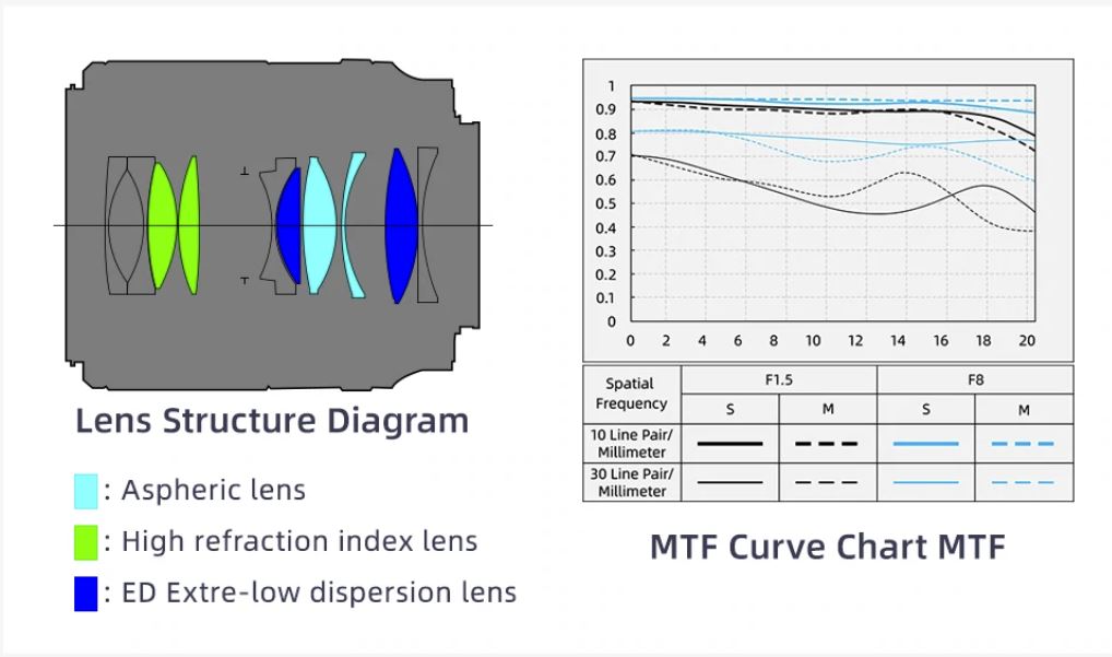 The MTF suggests that at F1.8 there is good center performance with a dip slightly off center that then picks up close to the edges and with another drop-off right in the corners. We’ll see if that bears out in real world tests.