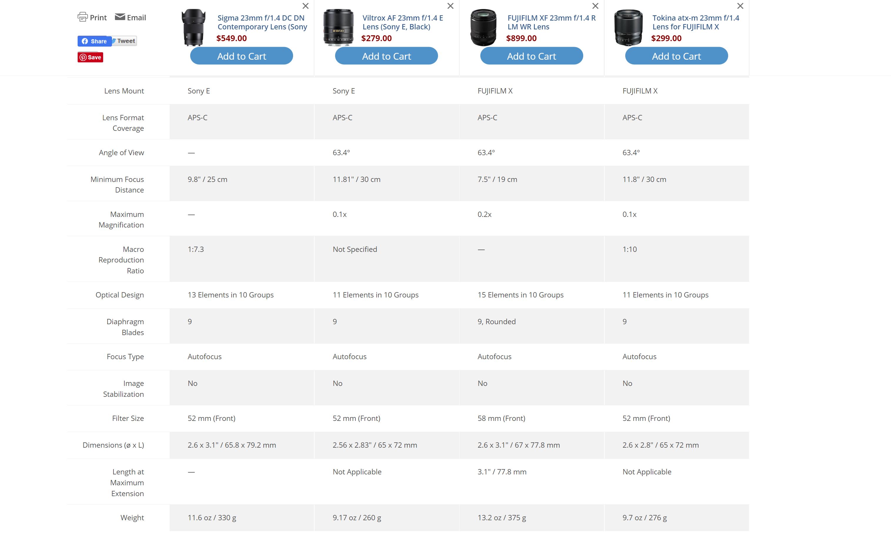 The Sigma also falls short of the Fuji lens in price at $549 USD, though it is significantly more expensive than either the Viltrox or Tokina budget alternatives (both available right under $300).