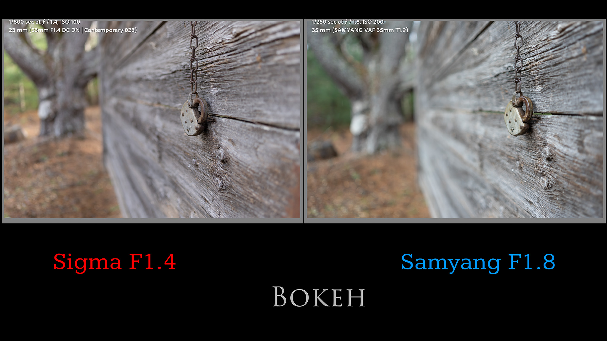 For some perspective, here’s a shot that I took to match the Sigma though under less ideal conditions (rainy and dark). I framed the two shots in a similar fashion. I used an F1.8 lens on full frame rather than a F1.4 lens due to the difference in depth of field between the two sensors. The Samyang image on the right presents with softer bokeh and less outlining in the background.