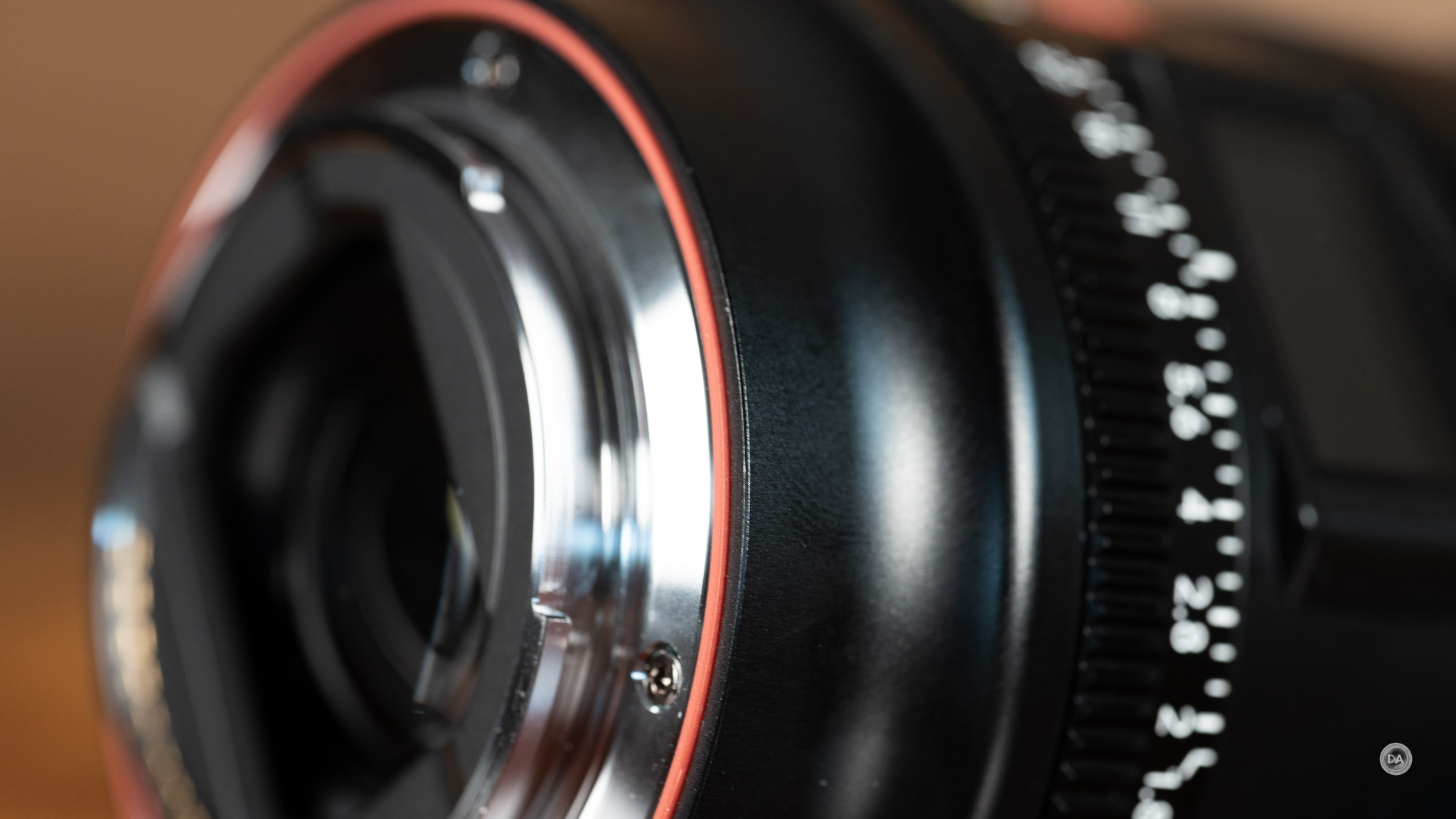 We also have weather sealing on this lens that starts with a unique maroon-colored gasket at the lens mount along with other seal points through the lens.