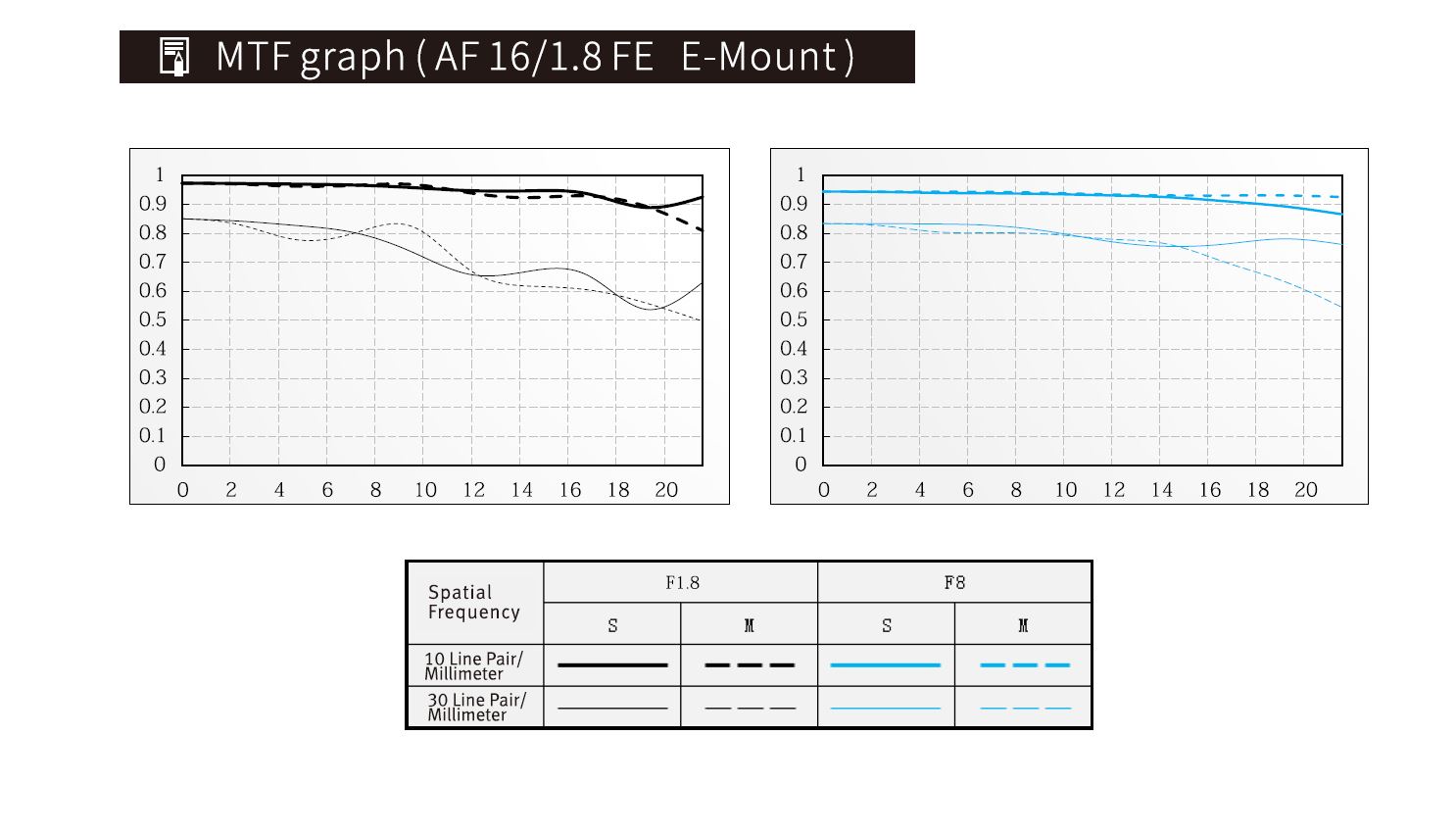 We have a fairly complex optical formula of 15 elements in 12 groups, and that includes 7 exotic elements (either aspherical or ED low dispersion elements). The MTF chart shows extremely strong center perofrmance, good mid-frame, and only a slight dip towards the corners. By F8 the results range from about 83% sharpness in the center to 77% in the extreme corners – a very, very flat (consistent) sharpness profile that is exceptionally good for a wide angle lens. Sigma’s recent 20mm F1.4 DN | ART lens is one the best large aperture wide angle lenses I’ve tested and the Viltrox 16mm is very close to being as sharp despite having a much wide focal length. In fact, the Viltrox 16mm is sharper all across the frame at F1.8 than the $3000 Zeiss 15mm F2.8 Distagon was at F2.8 – and the Zeiss was best wide angle prime you could get a decade ago. That’s serious progress!