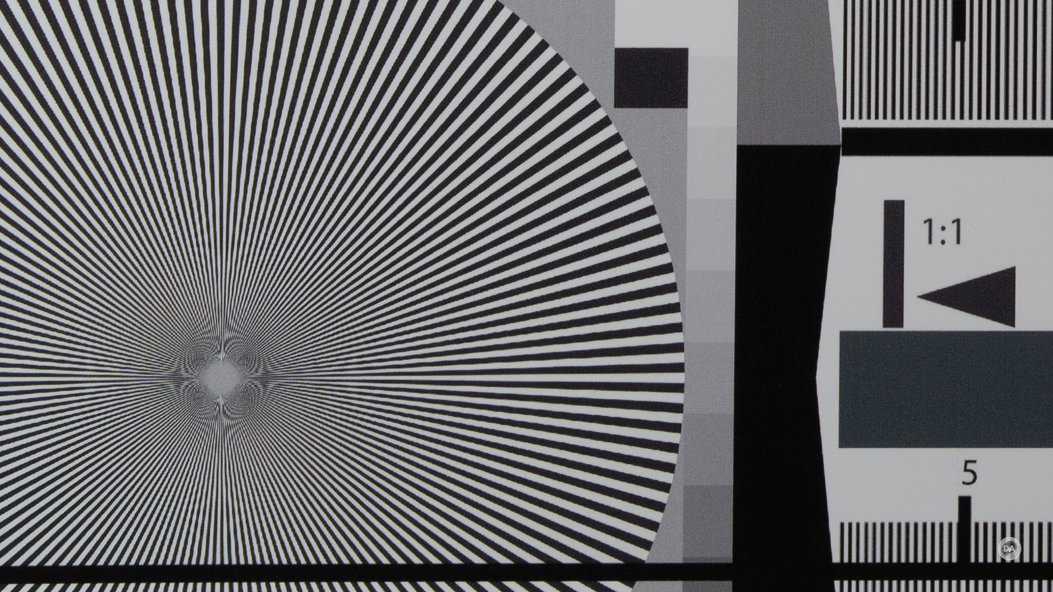 I’m also satisfied with the control of LaCA (lateral chromatic aberrations) that typically show up along the edges of the frame with high contrast transition points. Here we can see that even at F8 there is essentially a perfect transition from black to white near the edge of my test chart.