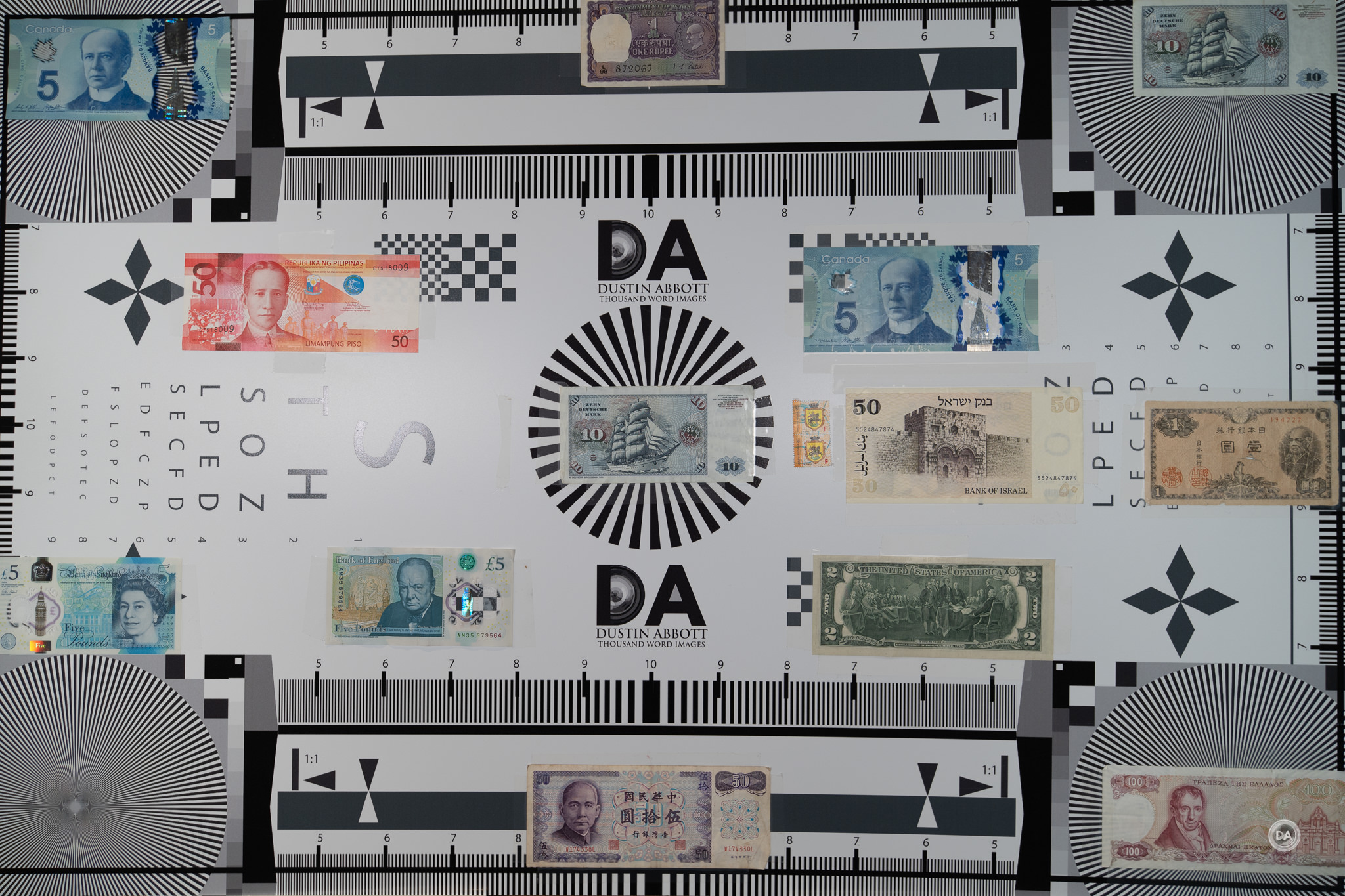 We’ll move on to inspecting our test chart. This test has been done on a 50MP Sony Alpha 1 sensor. I use a high end tripod and two second camera delay to ensure vibration doesn’t affect images. Here’s a look at the test chart that we will examine at high magnification: