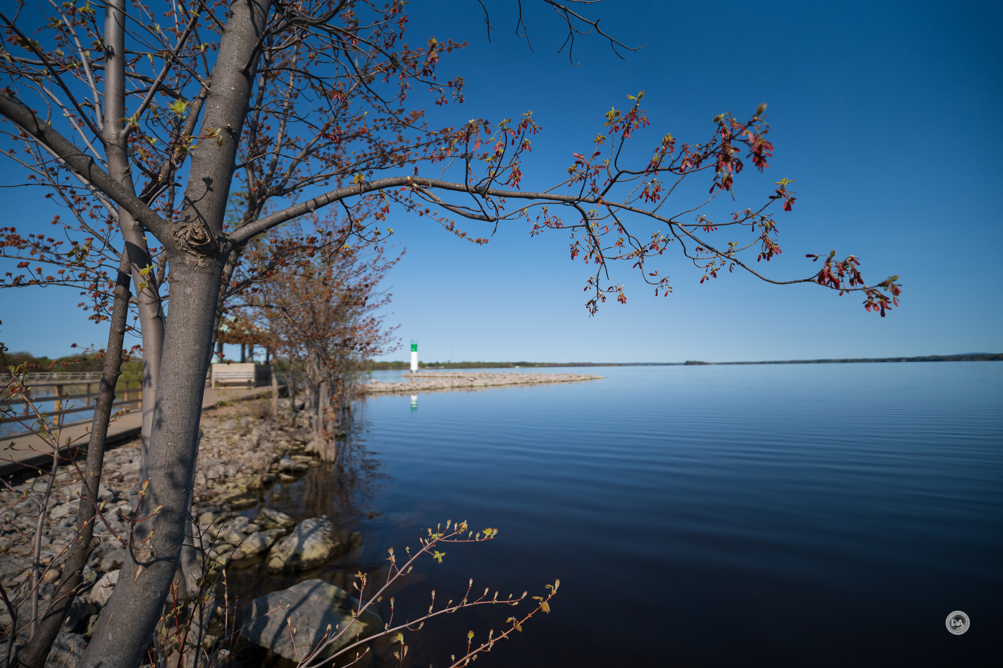 A large aperture also gives you the opportunity to play with depth of field a bit. In this series I framed the lighthouse with the budding tree and first focused on the lighthouse and then on the foreground tree. Two different points of focus tell two different stories.