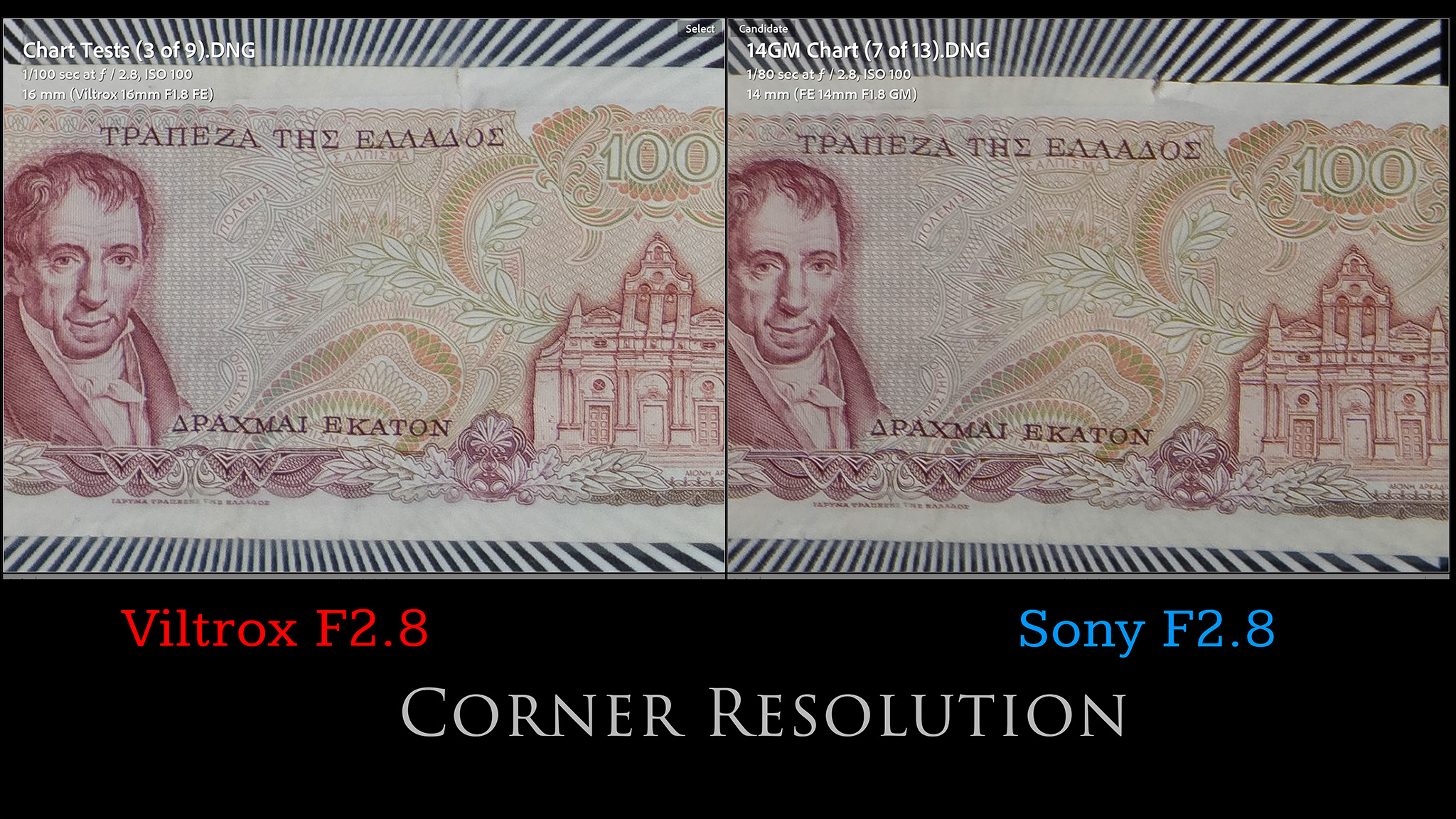To give you an idea of how sharp that actually is, here’s a comparison with the high end Sony 14mm F1.8 G Master: