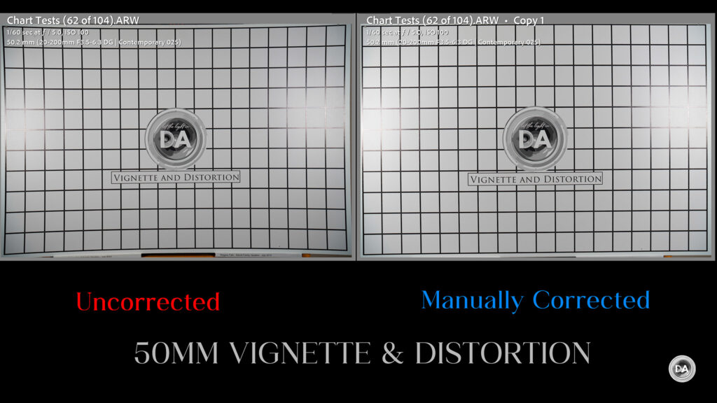 Even the correction profile proved incapable of addressing all the distortion and vignette. It’s much better than my manual correction, but there is definitely no barrel distortion left behind.
