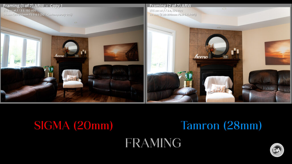 The Tamron pictured with the new Sigma has served me very well as a travel zoom (my review here), but there is one area where the Sigma has a clear advantage: framing. The Sigma is MUCH wider at 20mm (94.5°) than the Tamron at 28mm (75° 23′).