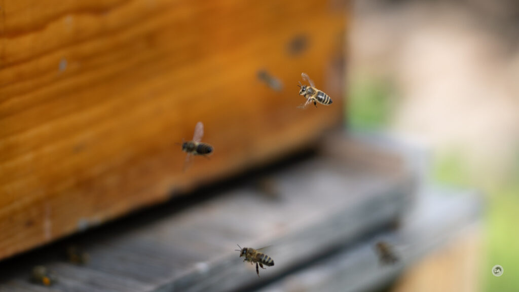 I was pleasantly surprised to actually get fairly good results when shooting bees going in and out of one of my hives.