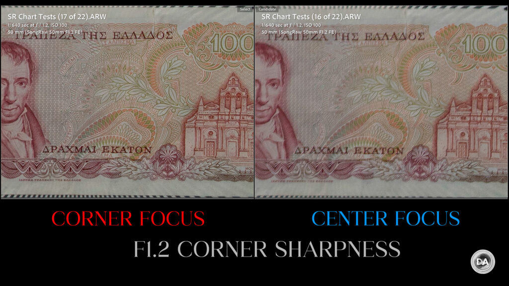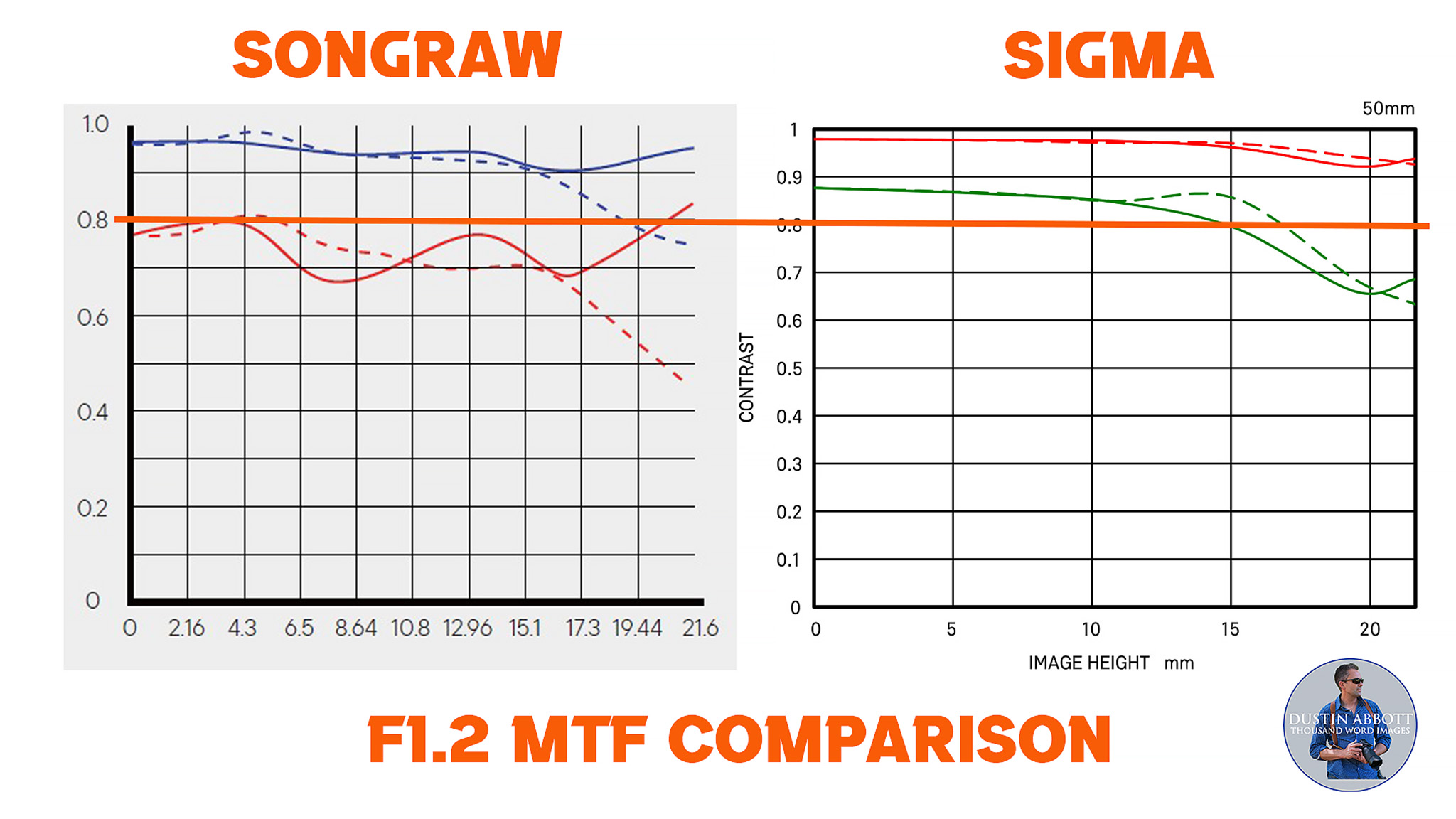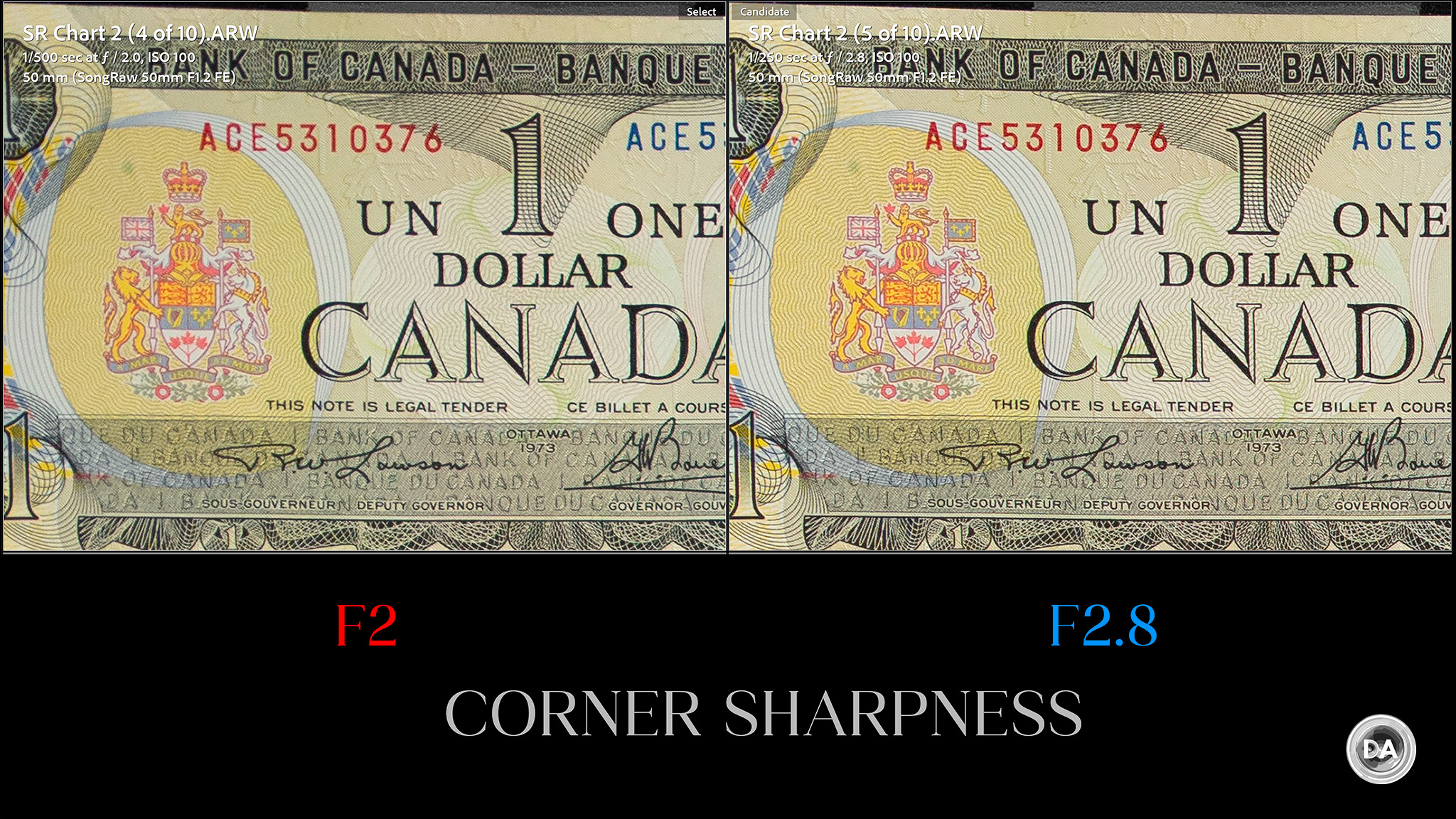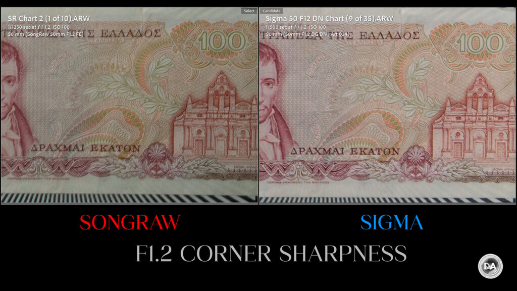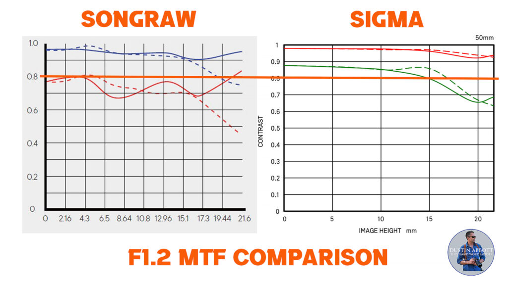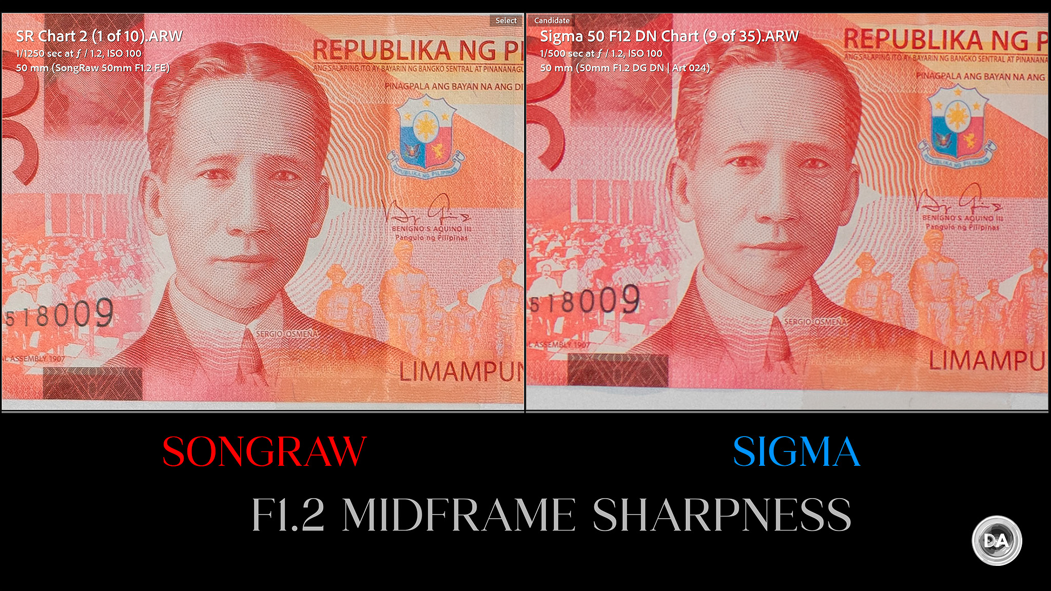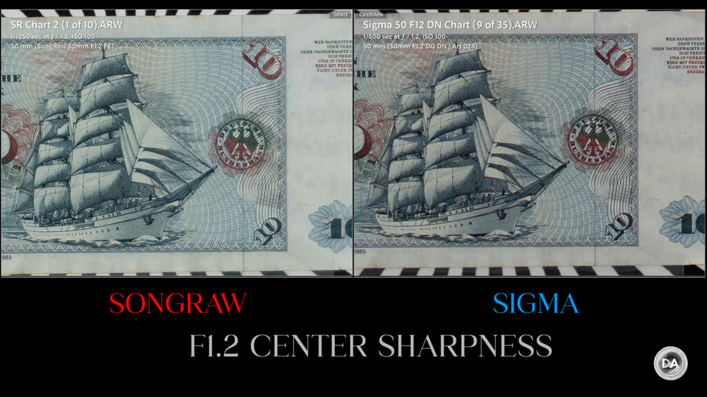 I decided to compare the Sigma 50mm F1.2 ART to the SongRaw, and found that the Sigma has about a 10% advantage in raw sharpness most of the time.