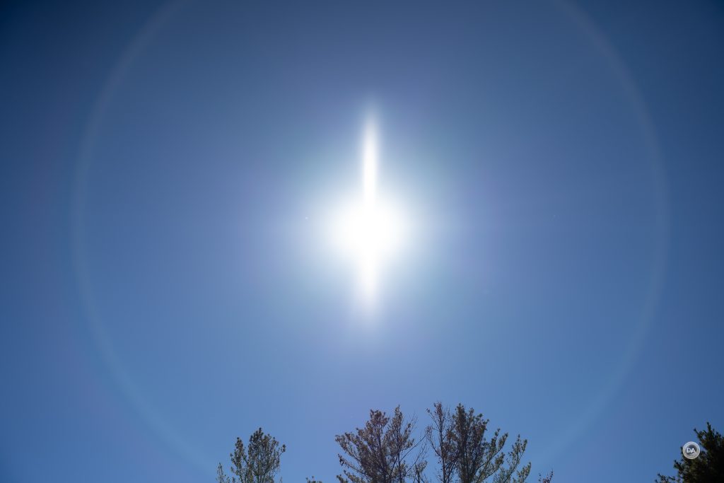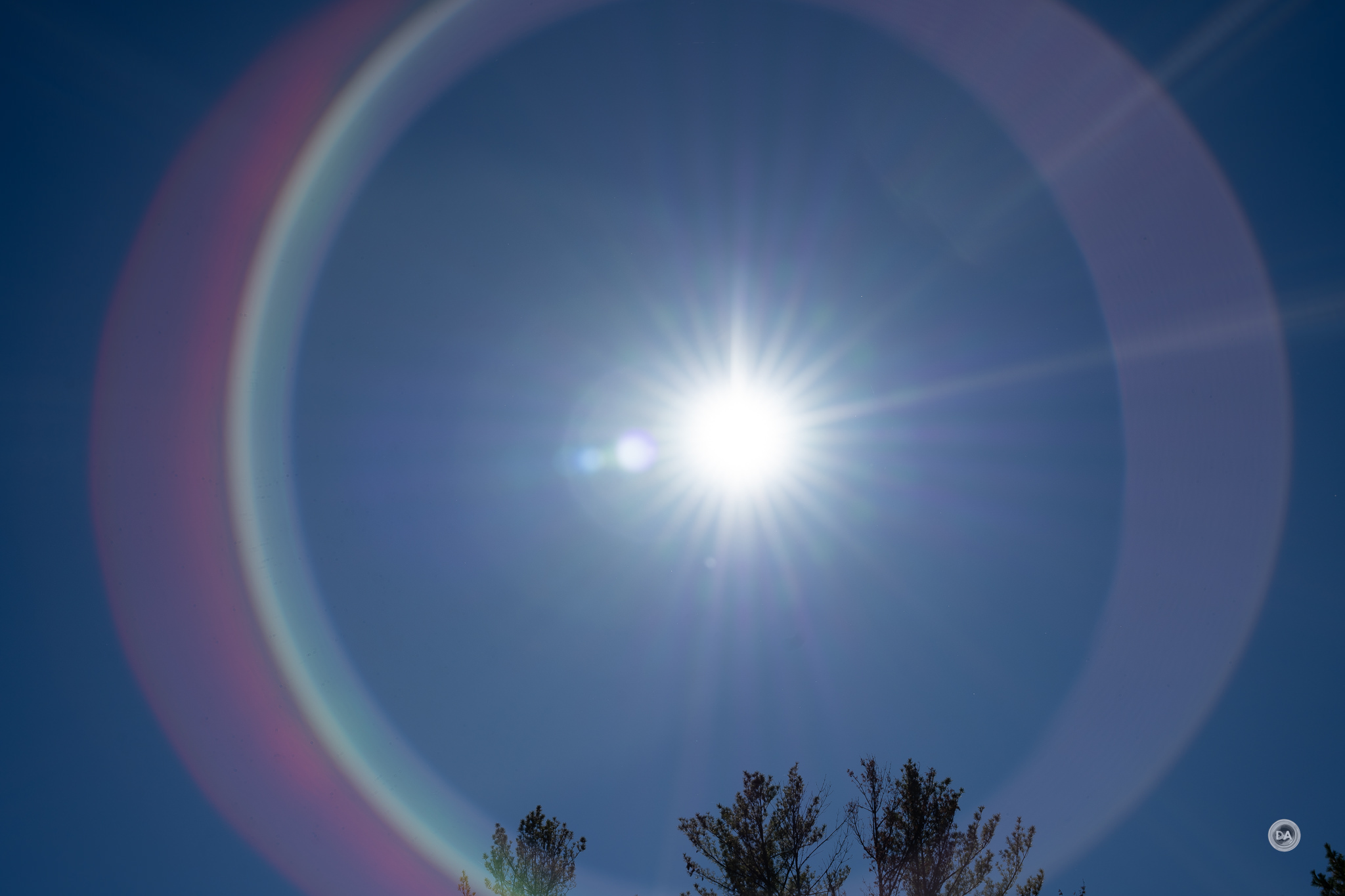 If you shoot right into the sun you will get a weird halo effect that begins at F2.8 and becomes very pronounced by small apertures like F11.