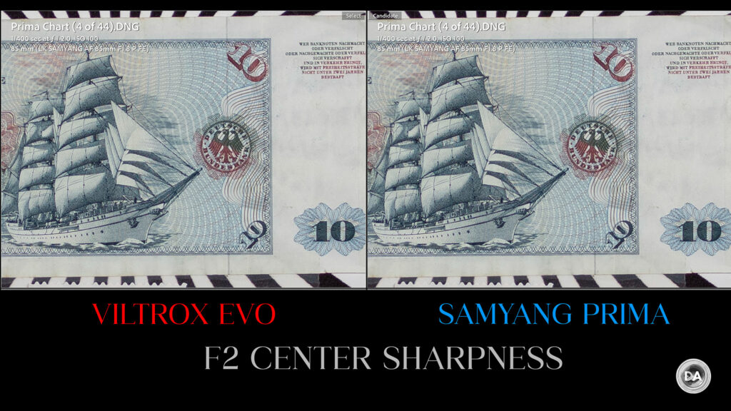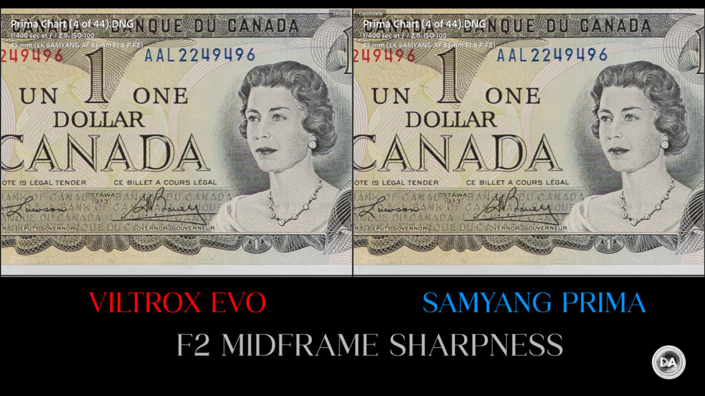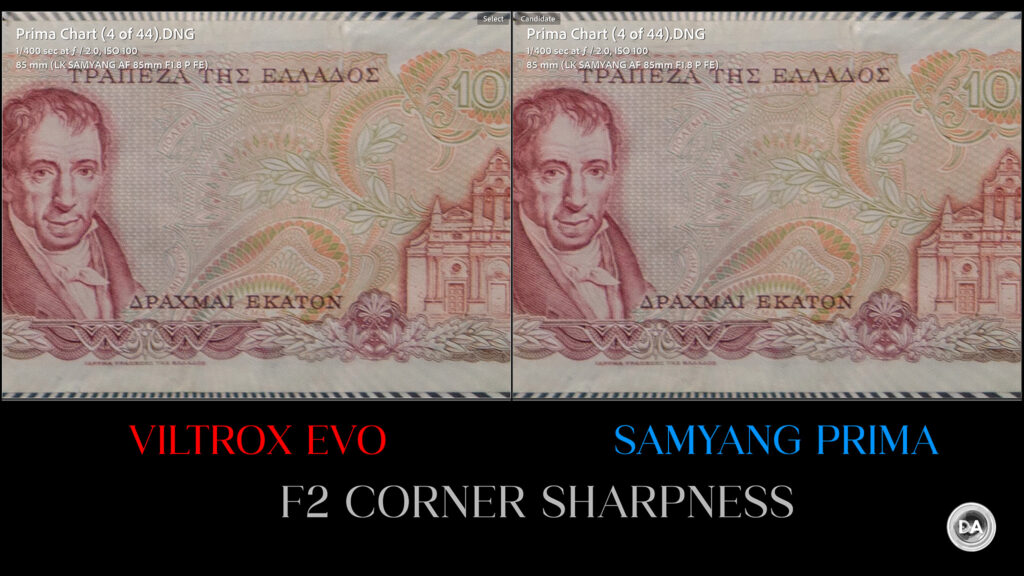 How does that compare to the LK Samyang 85mm F1.8 Prima? If I stop the Samyang down to F2, here’s what I found: