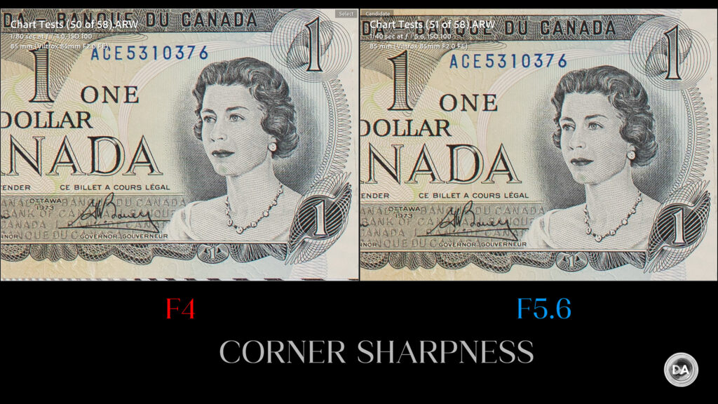 I saw next to no lateral style chromatic aberrations (LaCA) found in the contrast transitions near the edge of the frame.