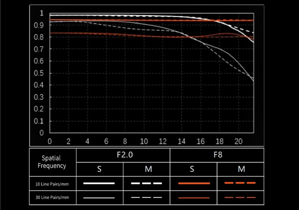The EVO 85mm sports a fairly simple optical design of 10 elements in 8 groups. This includes 2 ED (extra low dispersion) elements along with 2 HR (high refractive index) elements. The MTF shows an exceptionally sharp center and midframe, but a fairly steady decline from there to a fairly weak extreme corner. As has been the case with a number of recent Viltrox optical designs, the F8 performance isn’t quite at sharp in the center and midframe as F2 but stays remarkably consistent right into the far corners.