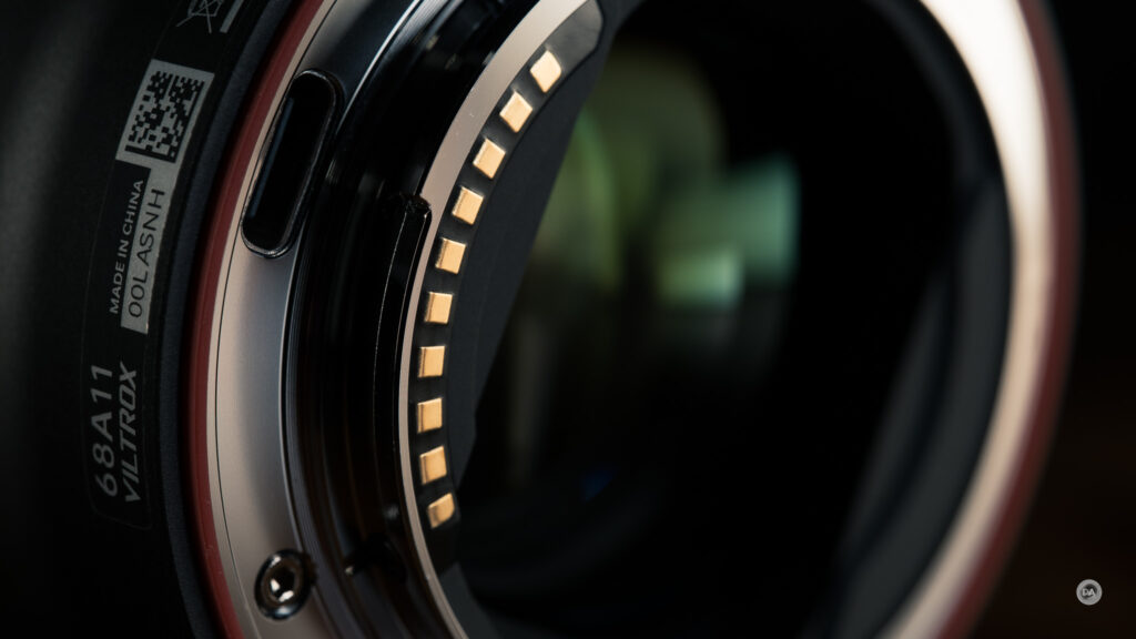Like the 85mm F1.4, the Pro 50mm sports floating elements in its design. This has a very positive benefit that we’ll detail momentarily, but those unfamiliar with this design element may be thrown by the fact that something seems to move (and clunk) a bit inside the lens when you tip it up and down. Floating element groups do in fact move forward and backward when the lens is powered off, though as soon as the lens is powered on, those elements are energized and no longer move. You can then tip the lens up and down and nothing happens. Other brands (including Sony) are increasingly doing similar designs, though I find the Viltrox design to be a little more obvious than some others.