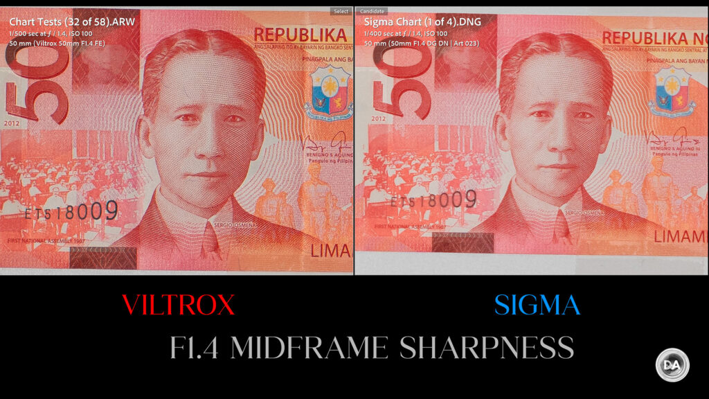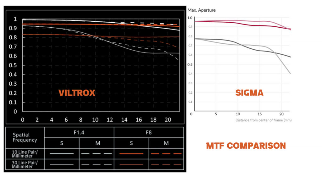 So, on paper, how does this compare to the Sigma 50mm F1.4 ART? On paper, the Viltrox is definitely sharper across the frame at F1.4, though if you compare the F8 results (not shown here), you’ll find that the Sigma is the higher performer at small apertures. We’ll see if that holds up in real world results.