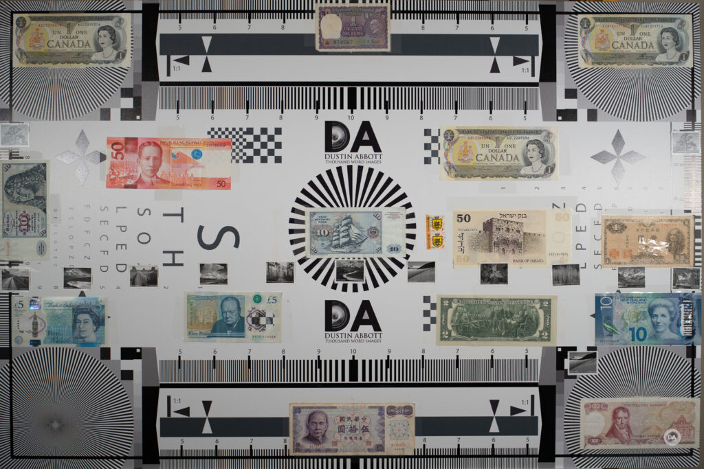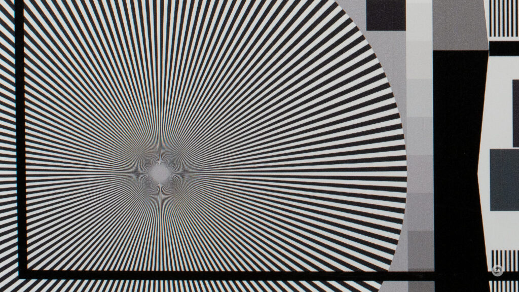 So let’s return to focus on resolution. These results are shot on a 61MP Sony a7RV and the crops are shown at roughly 200% magnification level. Here’s a look at the test chart that the crops are taken from.