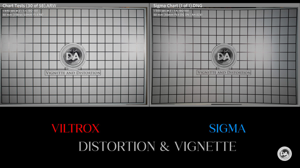 What’s more, the Viltrox delivers a much better result when it comes to vignette and distortion.