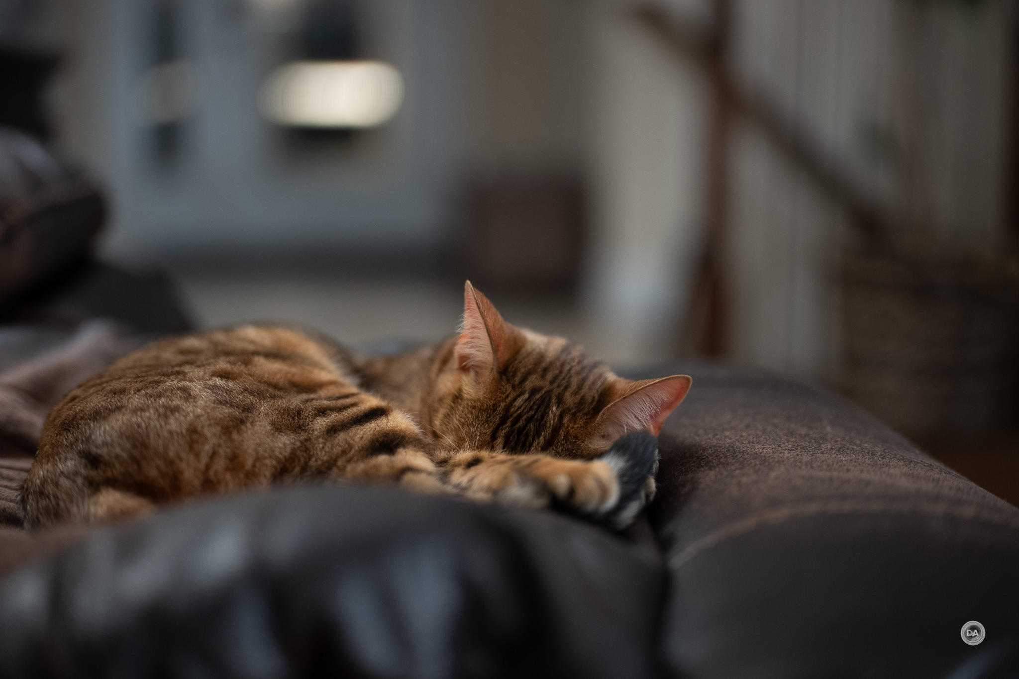 …to shots of the sleeping kitty in a dim living room.