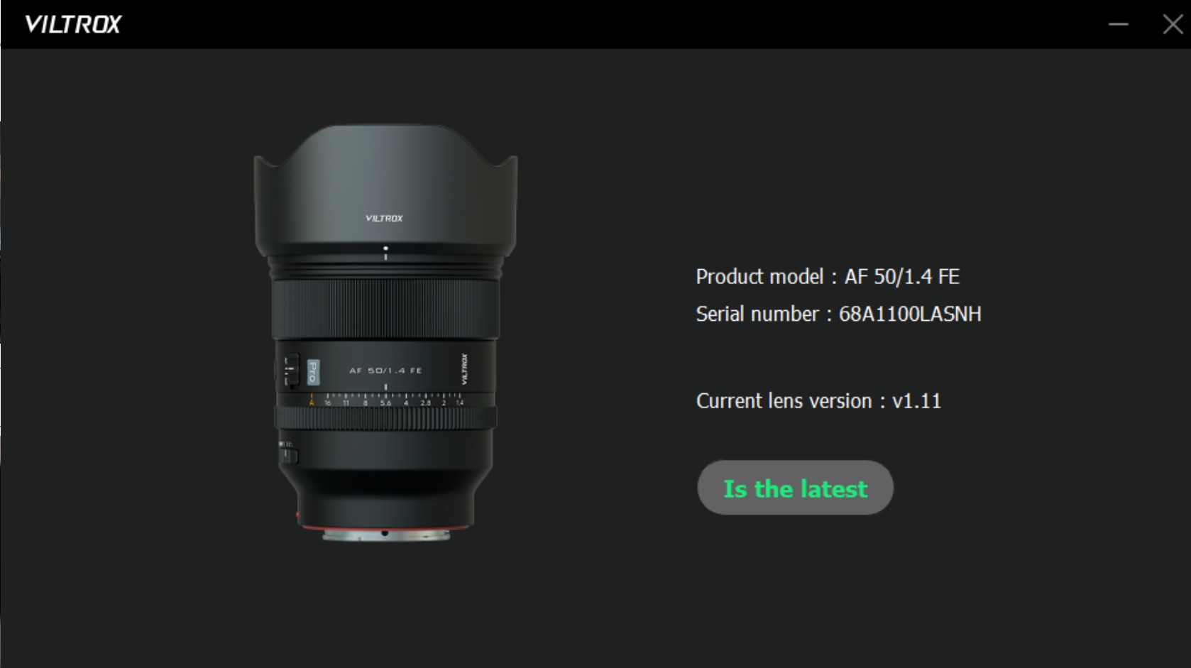 Viltrox continues with a trend that other lens makers are now imitating by including a USB-C port in the lens mount that allows you to do firmware updates right to the lens. I’m a fan of this approach, as it eliminates the need for a separate dock or lens station for firmware updates, and I find the process a little more intuitive than even doing firmware updates through the camera. Viltrox gives you a variety of ways to do the firmware updates. Here’s the screen I got after doing a firmware update via their PC app.