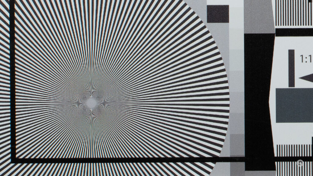 So how about resolution and contrast? I’m testing on the ultra-high resolution 40MP of a Fujifilm X-H2. All tests have been done on a sturdy tripod with a 5 second delay, and crops are shown at 200% magnification to emphasize any flaws. Here’s a look at the test chart.