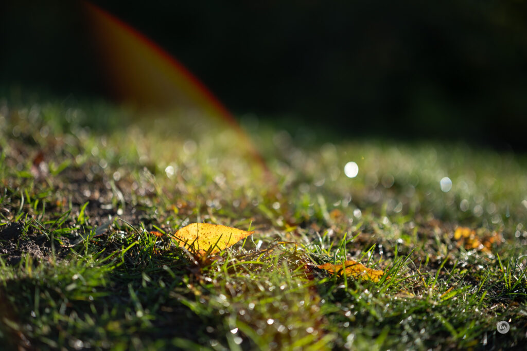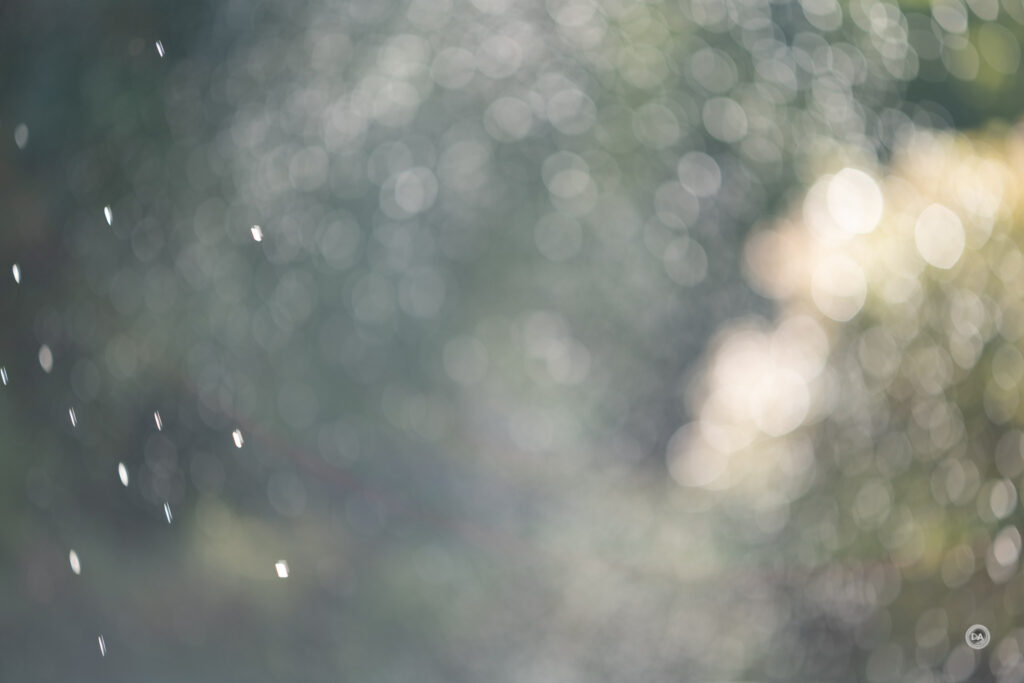 I had a little fun with the Pro 56X, using directional evening light and defocused water droplets from a sprinkler to make a fun shower of bokeh.