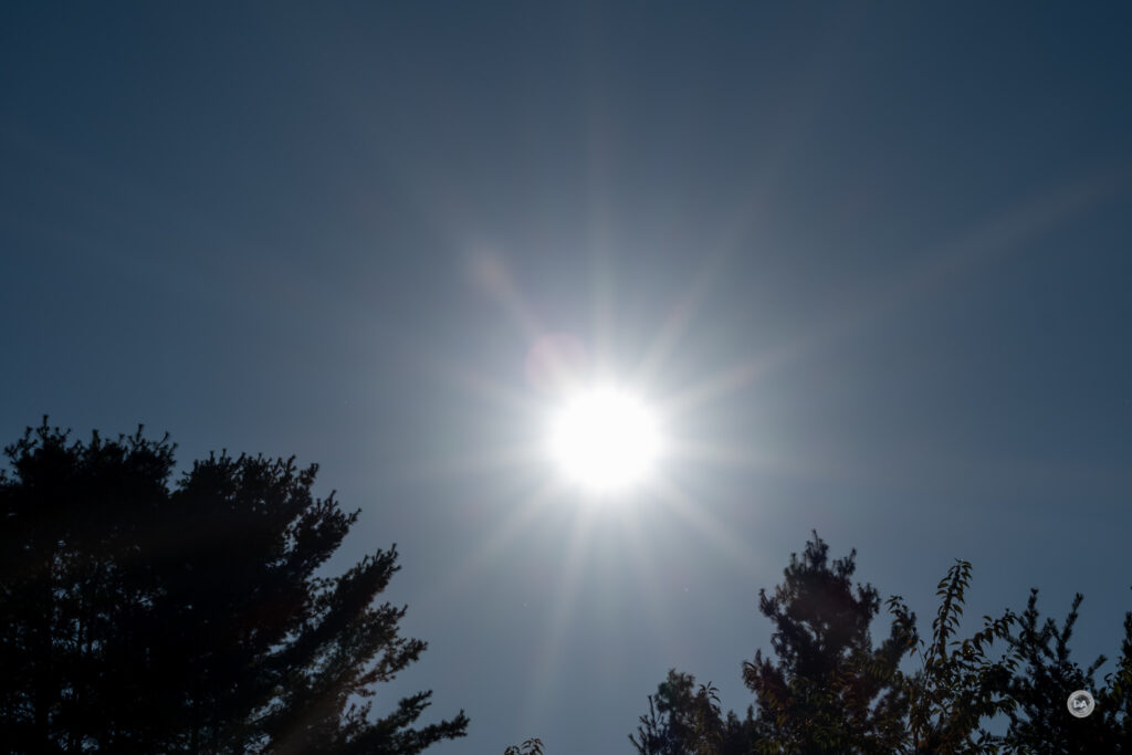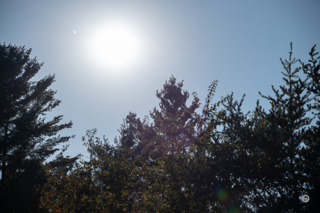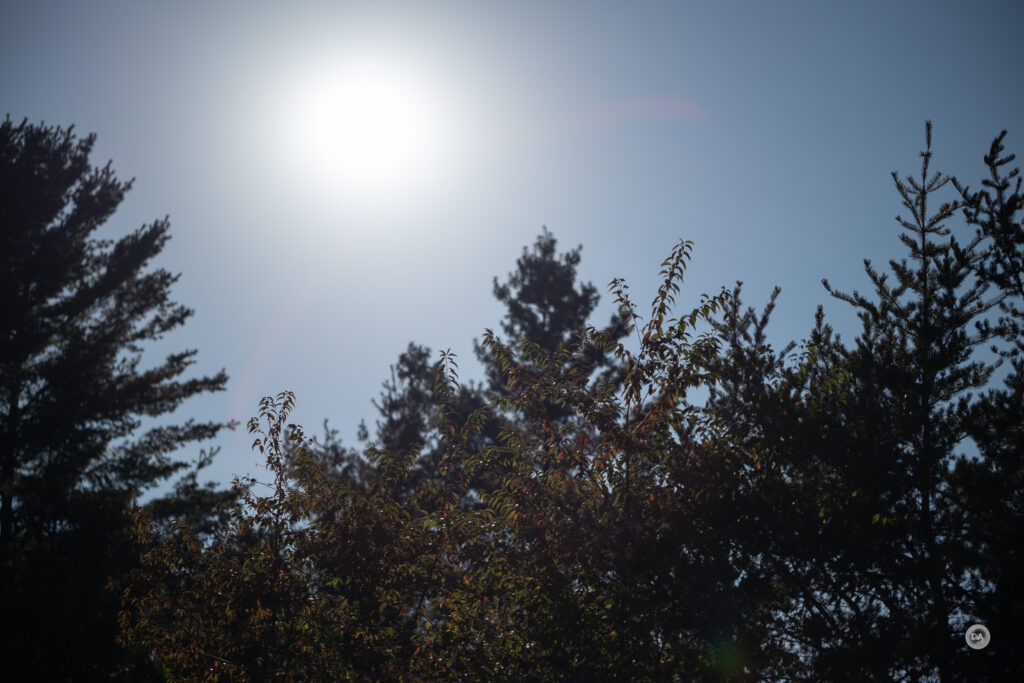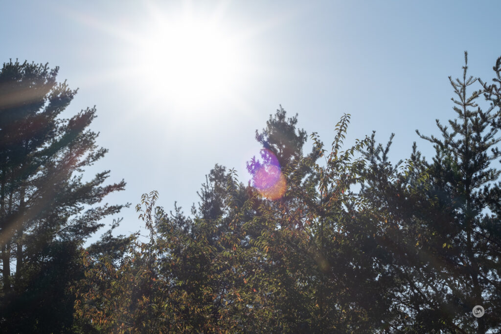 In situations where the sun is nearer the edge of the frame, however, I find that the effects change a fair bit. Here’s a series at F1.2, F2.8, and F11:
