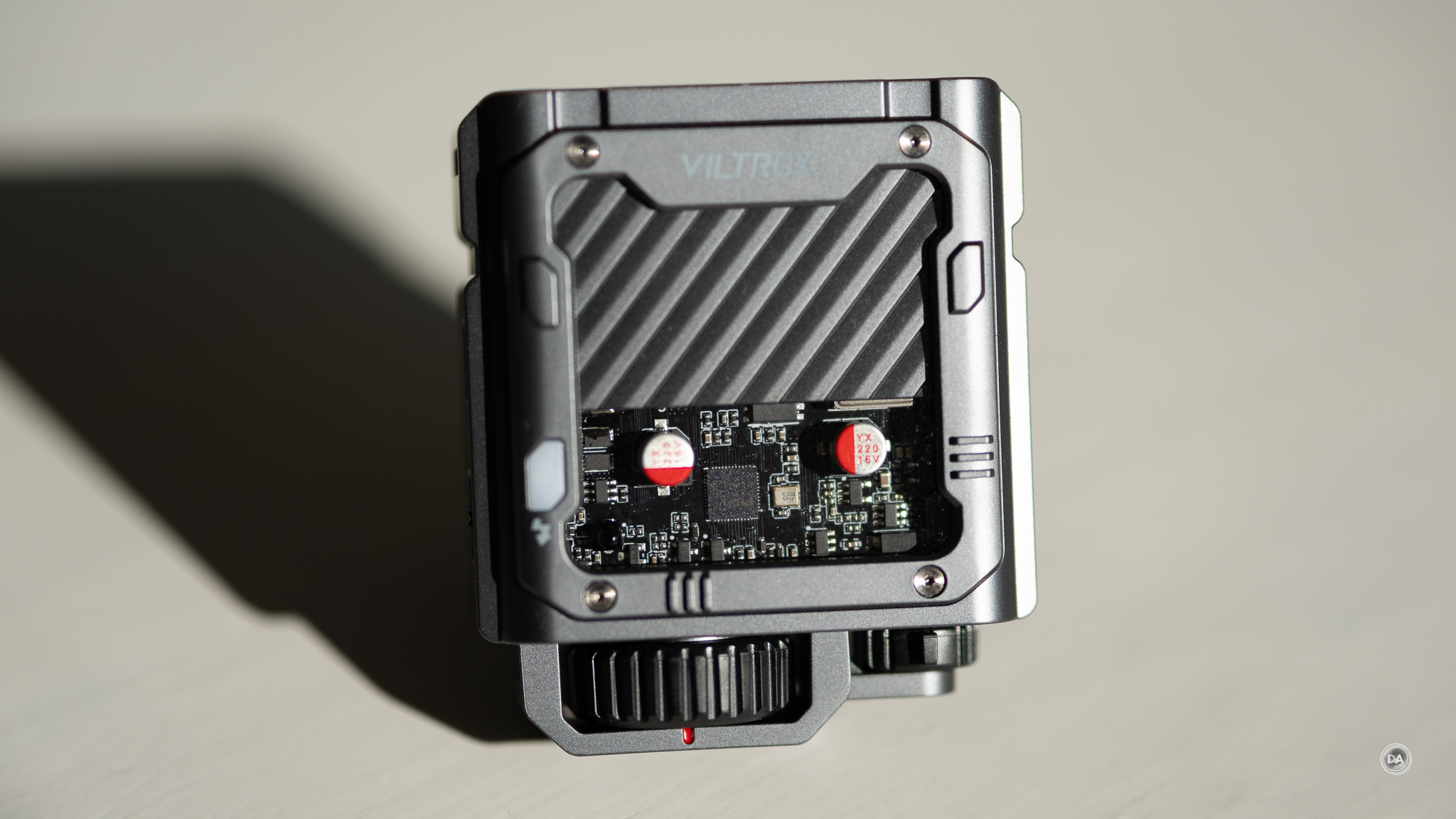 While depth of field is incredibly tiny at these focus distances, you can see the clarity even at F1.2 on the crop from this photo of Viltrox’s new flash (check out how clear the “16,000 MHz” is, which is what’s actually in focus here.)