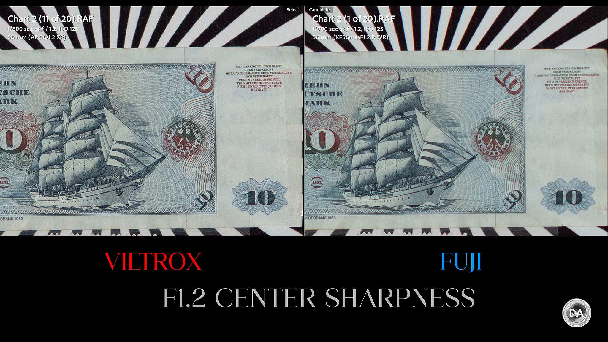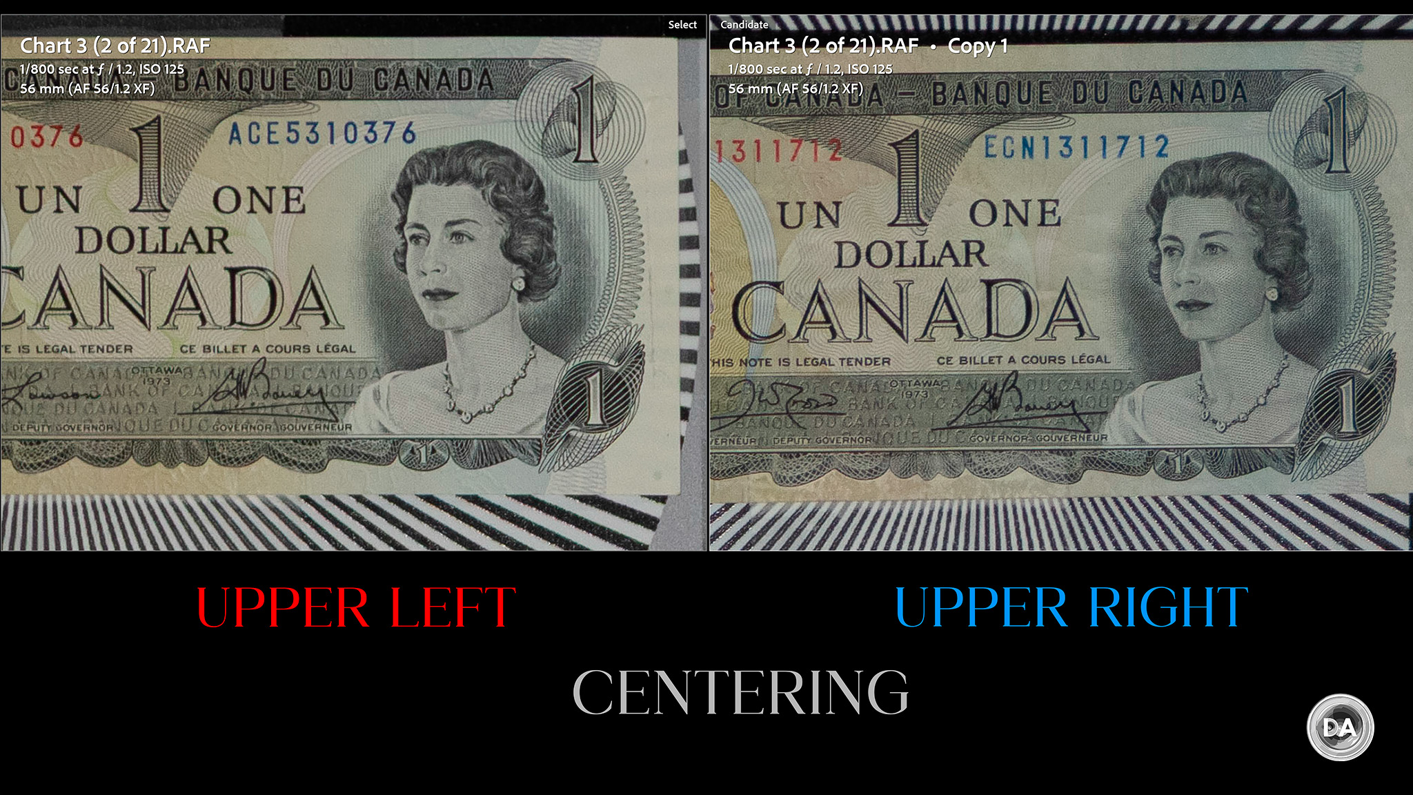 If you want a more vivid demonstration of how much better the Pro 56X is than most of the “cheaper” competition, here’s a look at how it compares to the Sirui Sniper 56mm F1.2 in the center:
