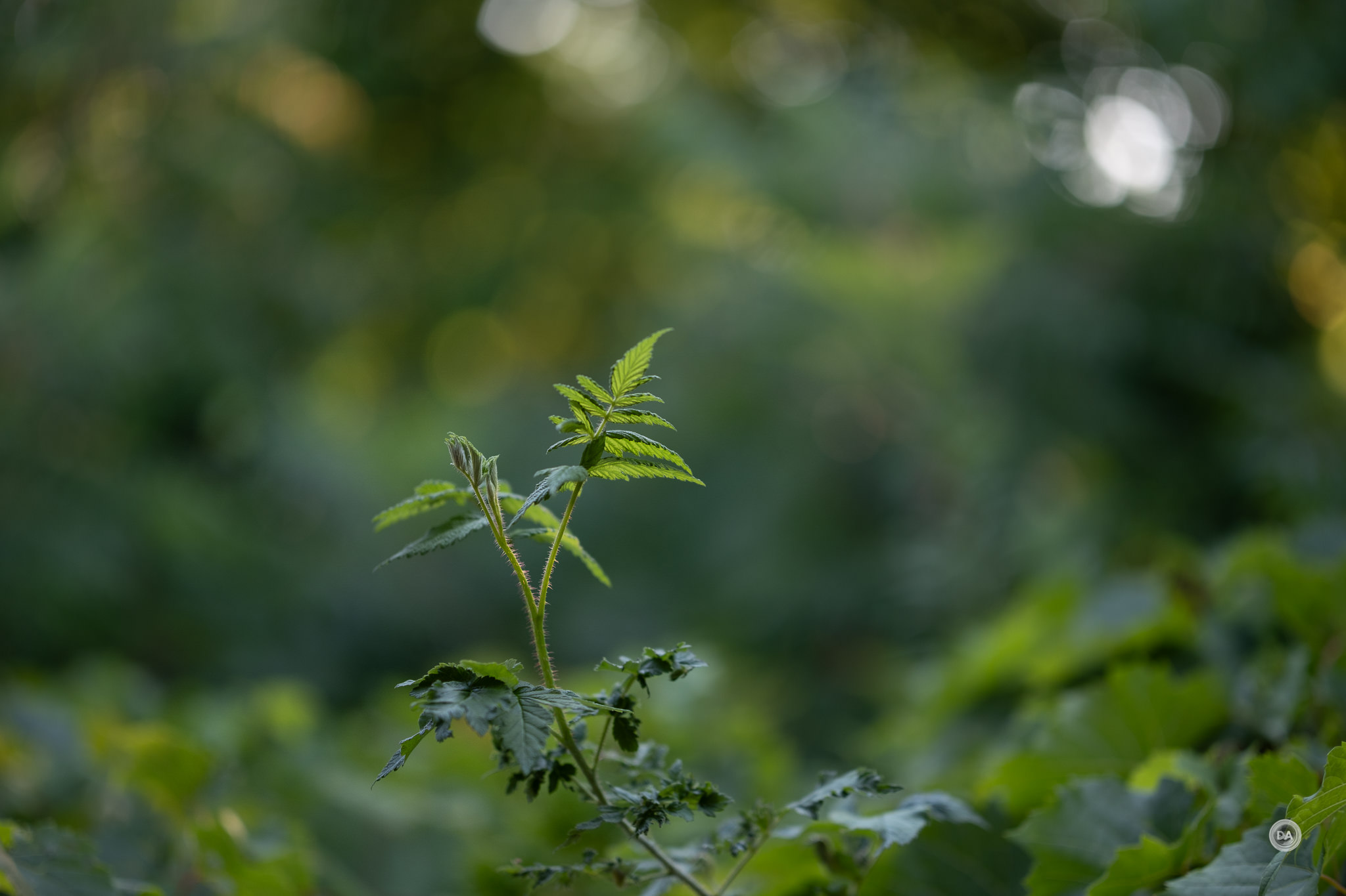 I had a little fun with the Pro 56X, using directional evening light and defocused water droplets from a sprinkler to make a fun shower of bokeh.