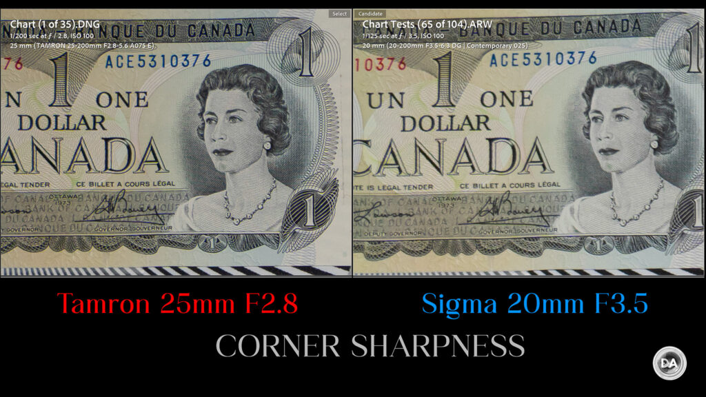In all cases I could get a clean manual correction, which helps immensely. Distortion and vignette are far less of an issue on the Tamron than the Sigma. That’s due to Tamron taking the more conservative route. The 20mm end of the Sigma is very attractive on paper, but it required a LOT of compromises to make that happen.