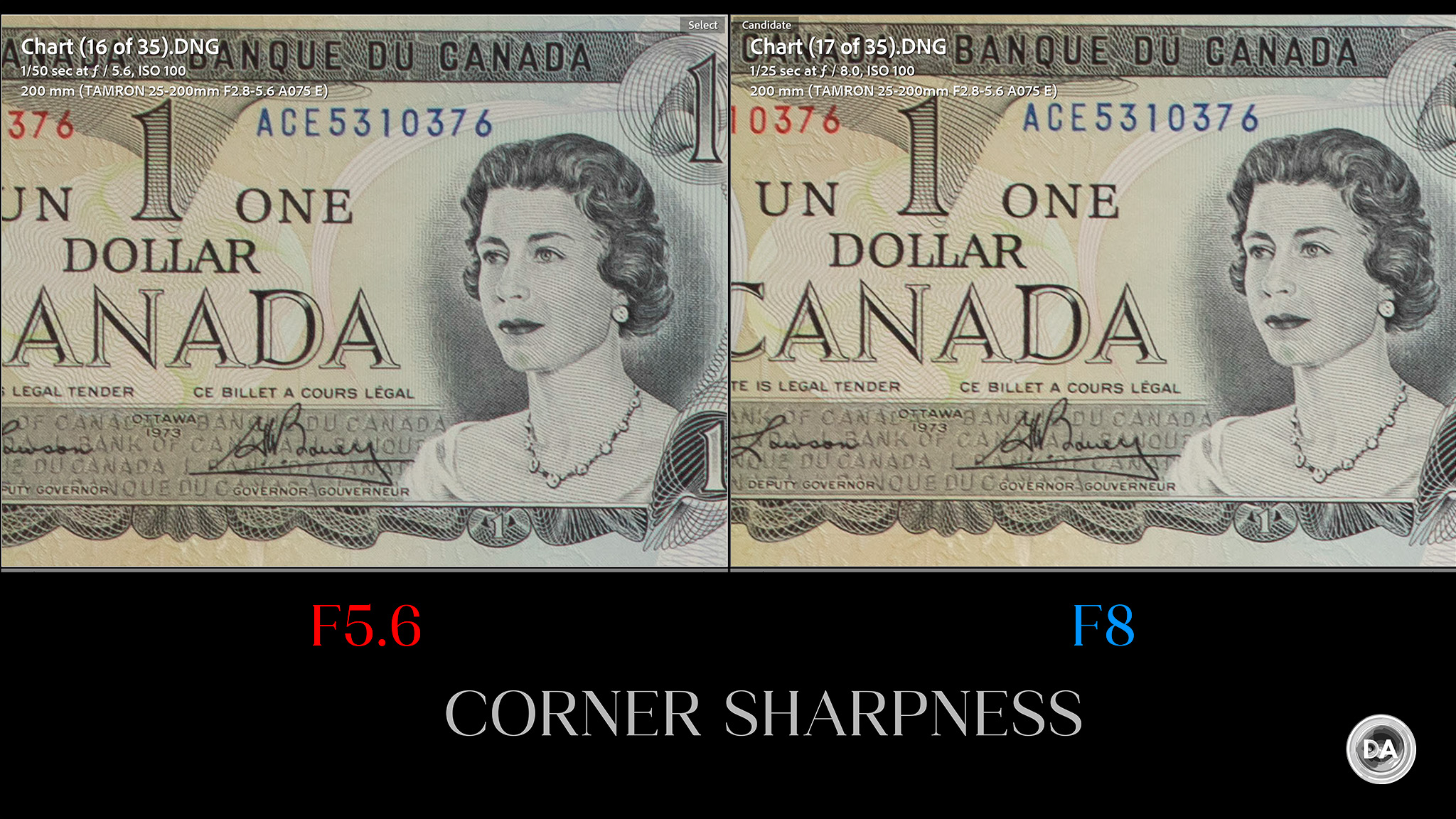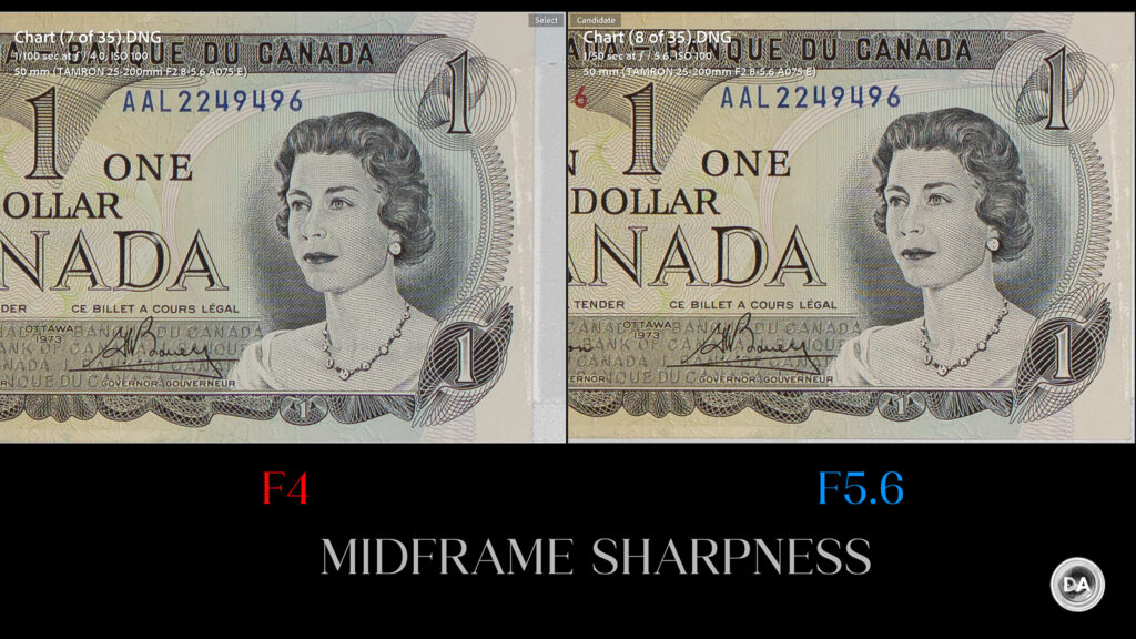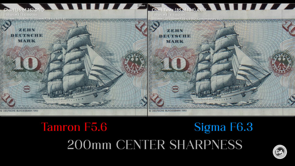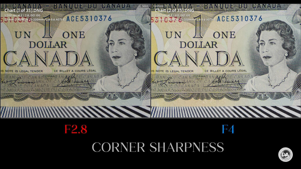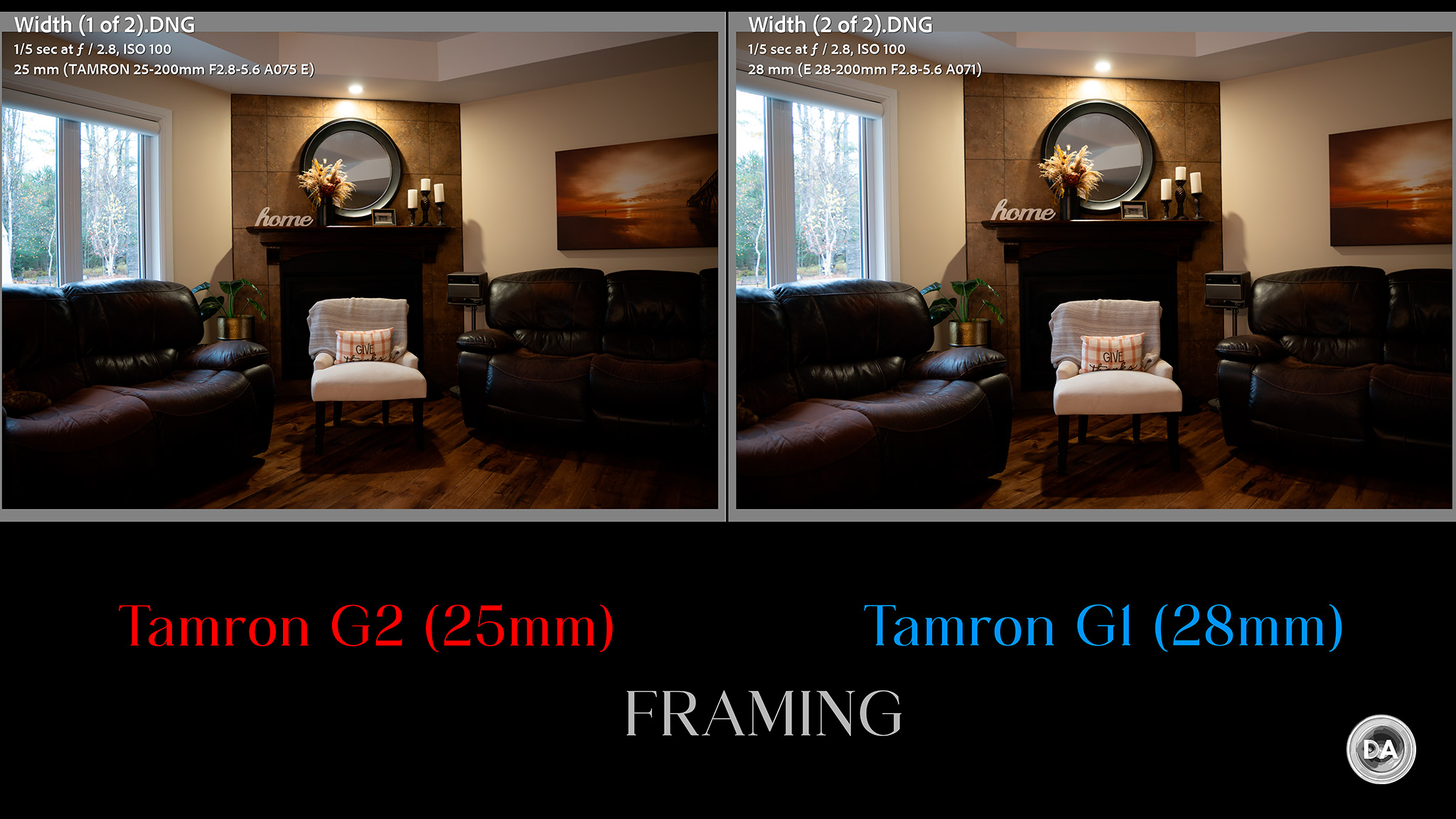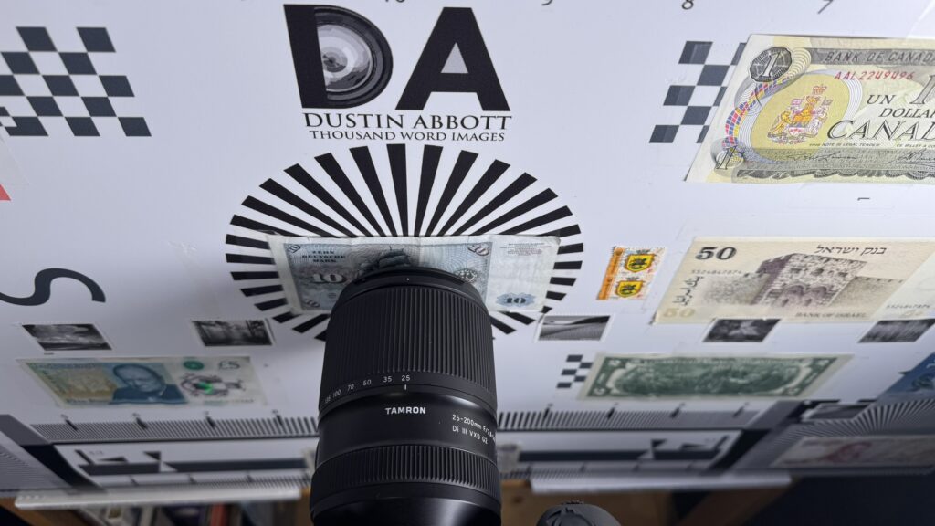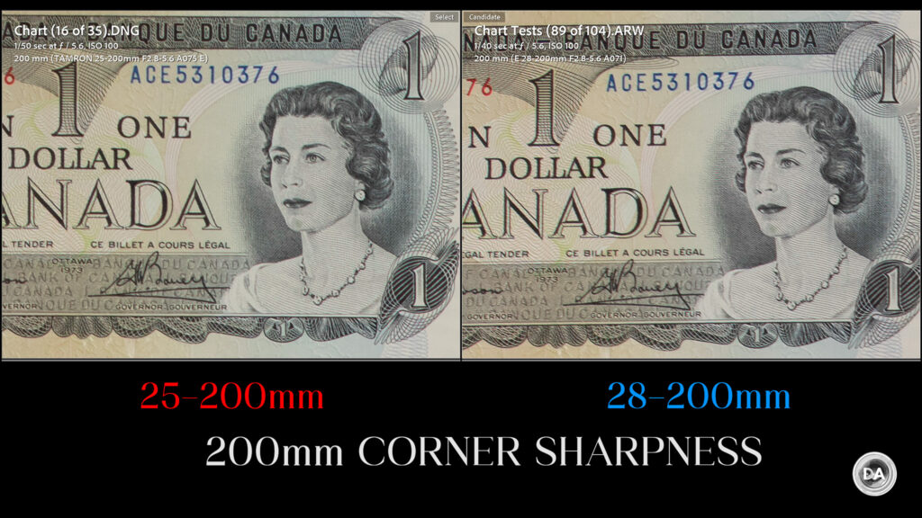 Like the Sigma (though to a far lesser degree), the Tamron 25-200 G2 isn’t nearly as bright at the 28-200mm. Here’s a look at a chart I put together while testing all three lenses.
